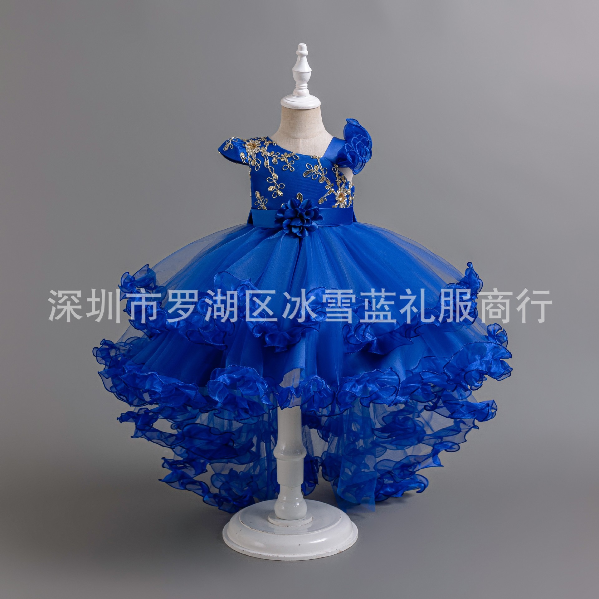 子供服のスカートの蓬蓬のスカートの花の子供のウェディングドレスの女の子の王女のスカートの歳の出演服のタキシードの青い色