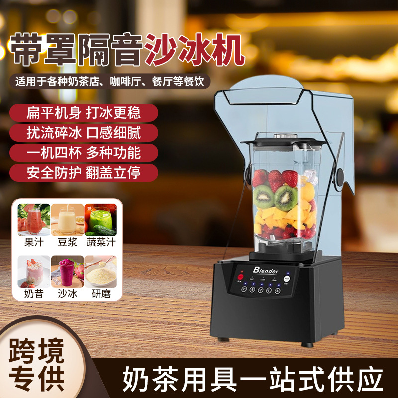 带罩隔音沙冰机商用奶茶店碎冰机高转速料理破壁机工厂直供220V