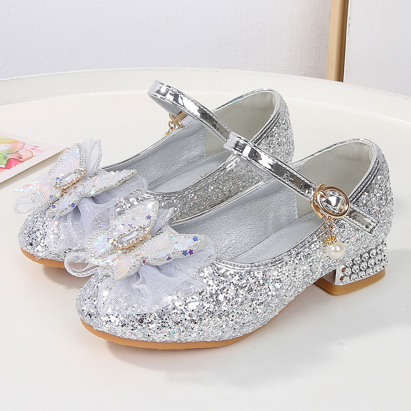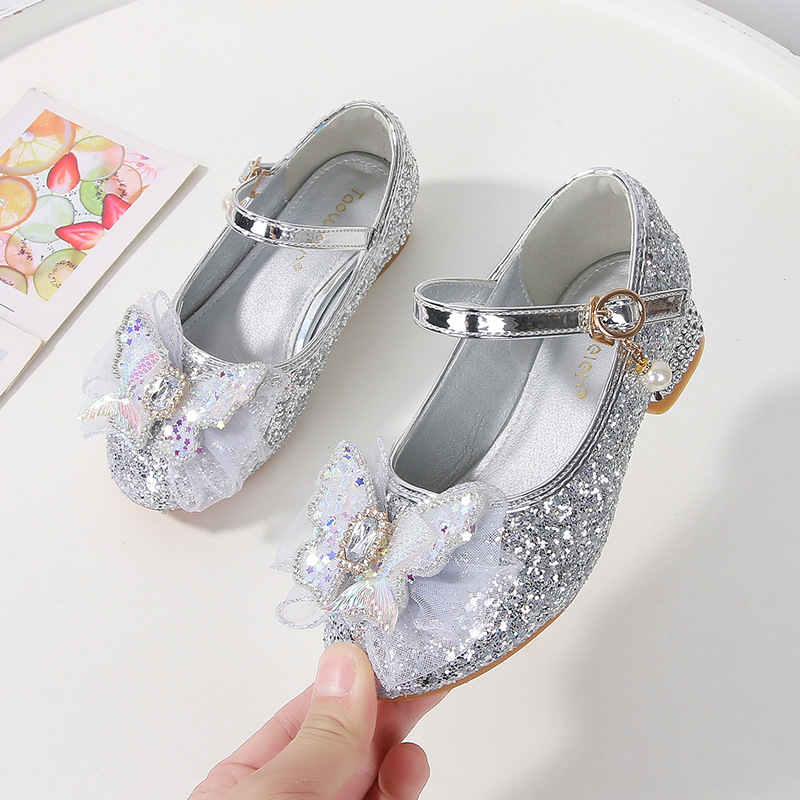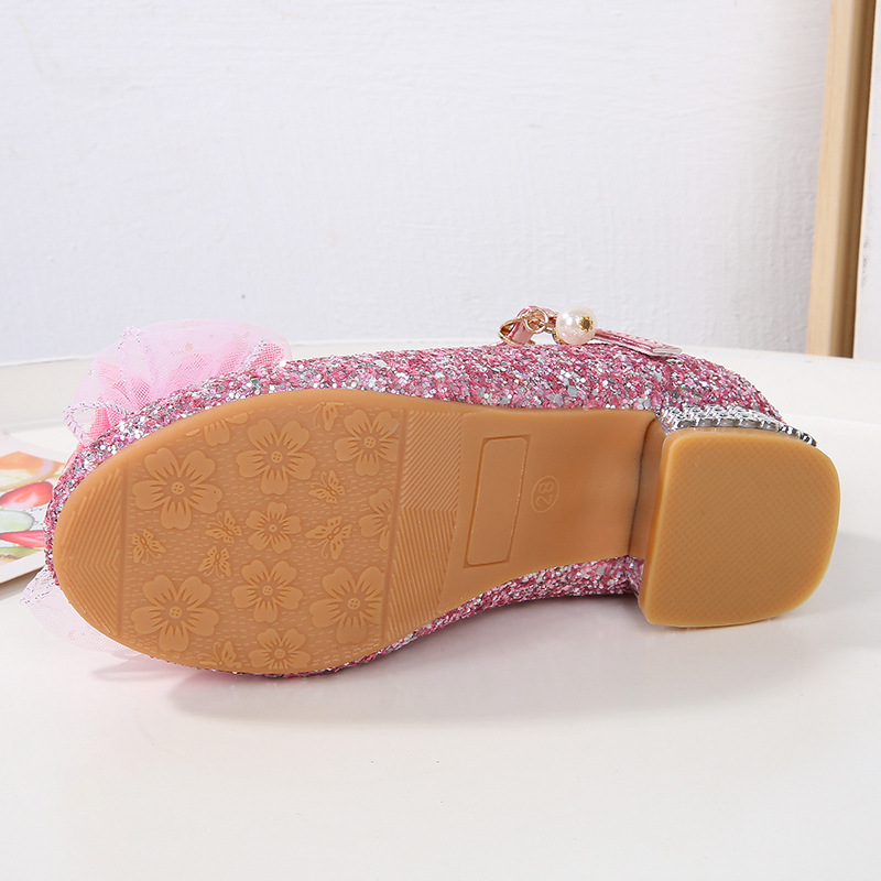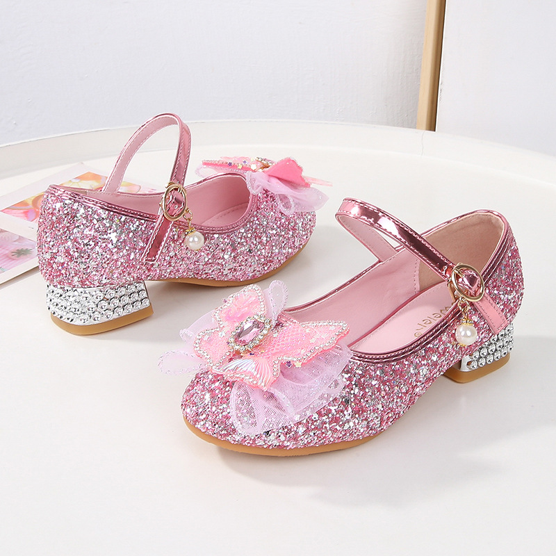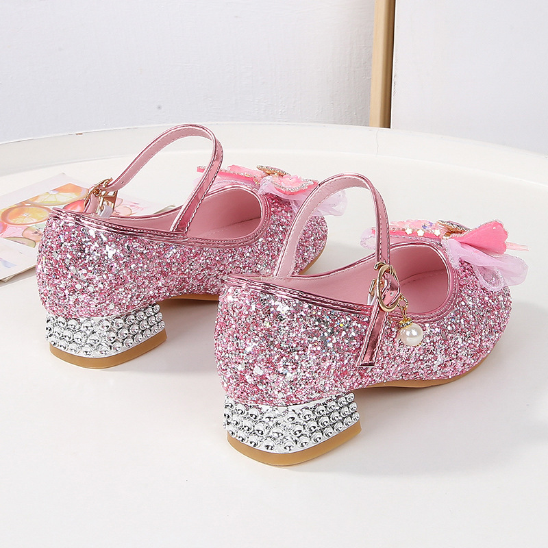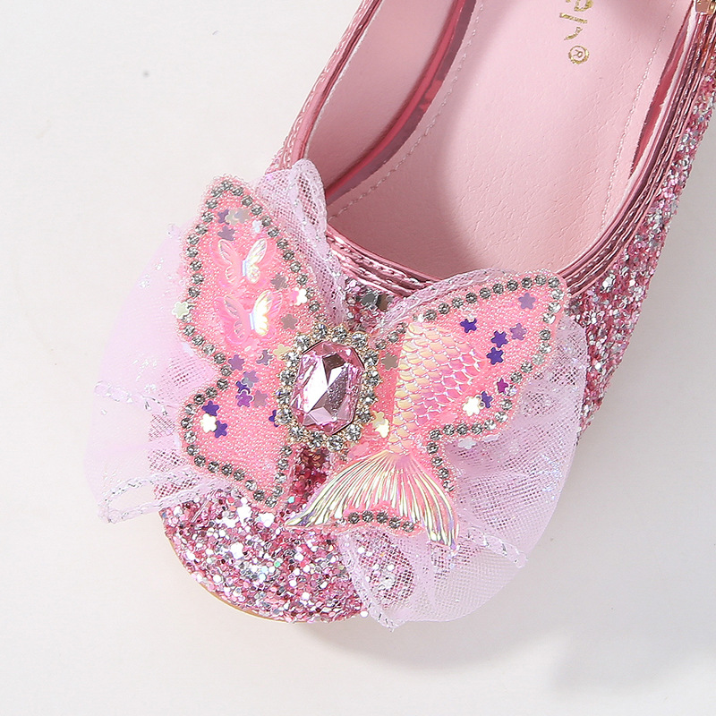 子供用クリスタルシューズ 2025年春秋新作 女の子用ハイヒールプリンセスシューズ シングルシューズ 女の子用スパンコール付き革靴 中学生向け