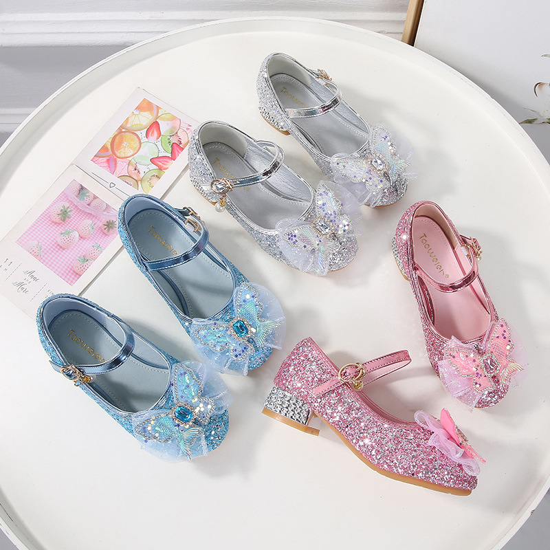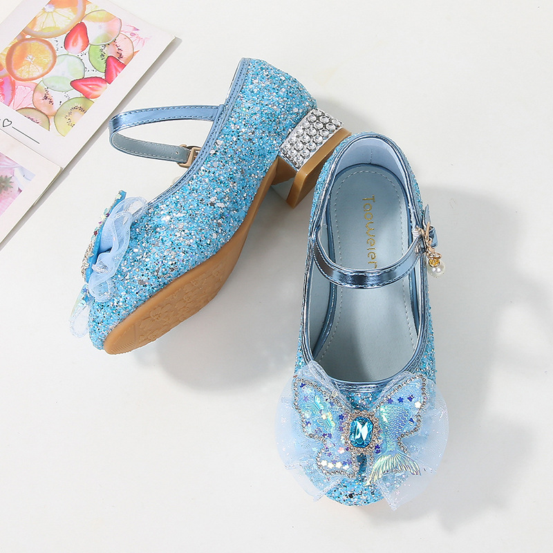 女の子ハイヒールプリンセスシューズ 2022 春と秋の新子供靴エルサ子供靴ガールズファッションベビーシューズ
