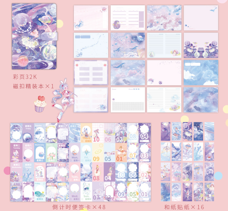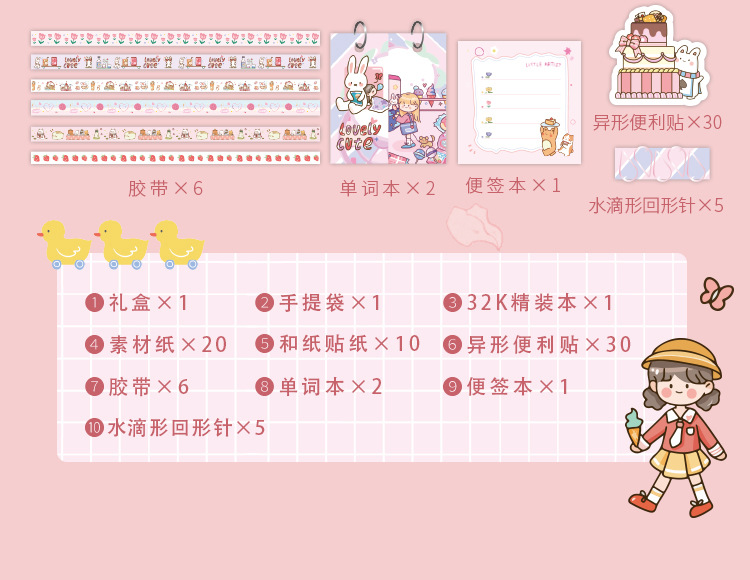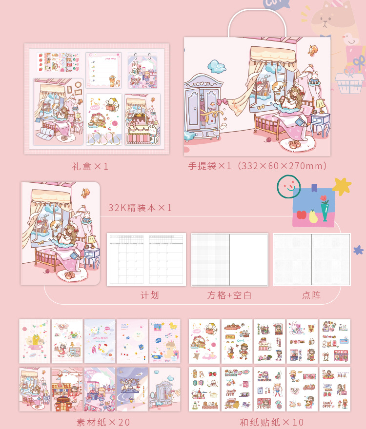 新型三莉鴎手帳セットかわいい少女心学生プレゼント文房具テープシール手帳ギフトボックス