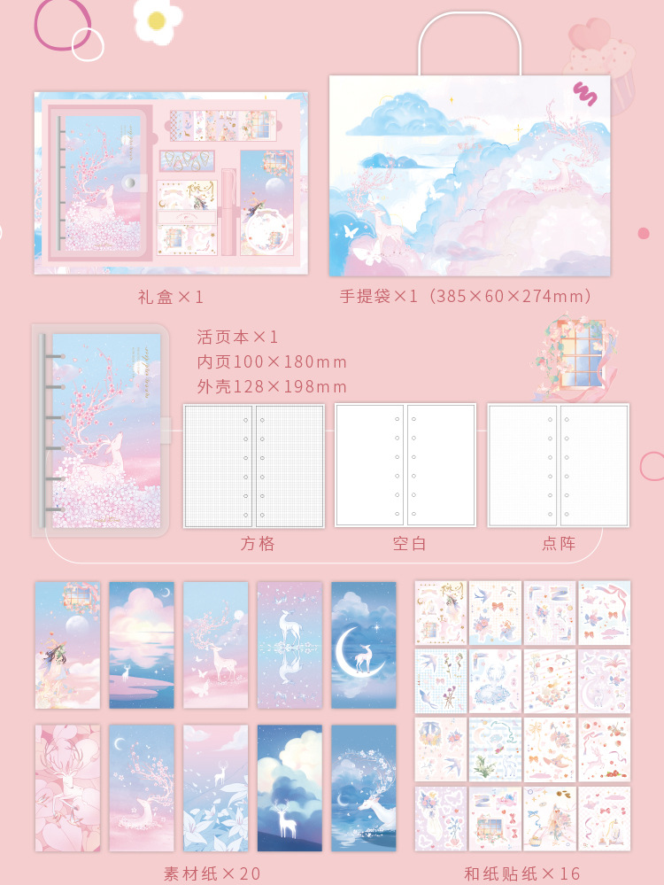 ライトピッキングハンドブックギフトボックスセット星海学生女の子誕生日ギフトハンドブックテープ文具ギフトボックス