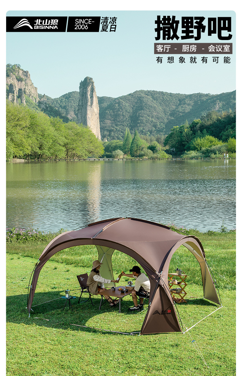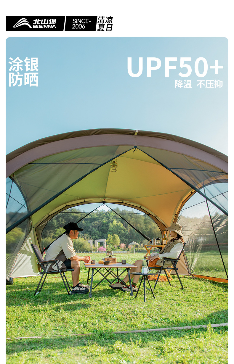 北山狼屋外折り畳みポータブルトンネルテント黒ゴム日焼け止め超大型天幕キャンプフルセット装備凉棚