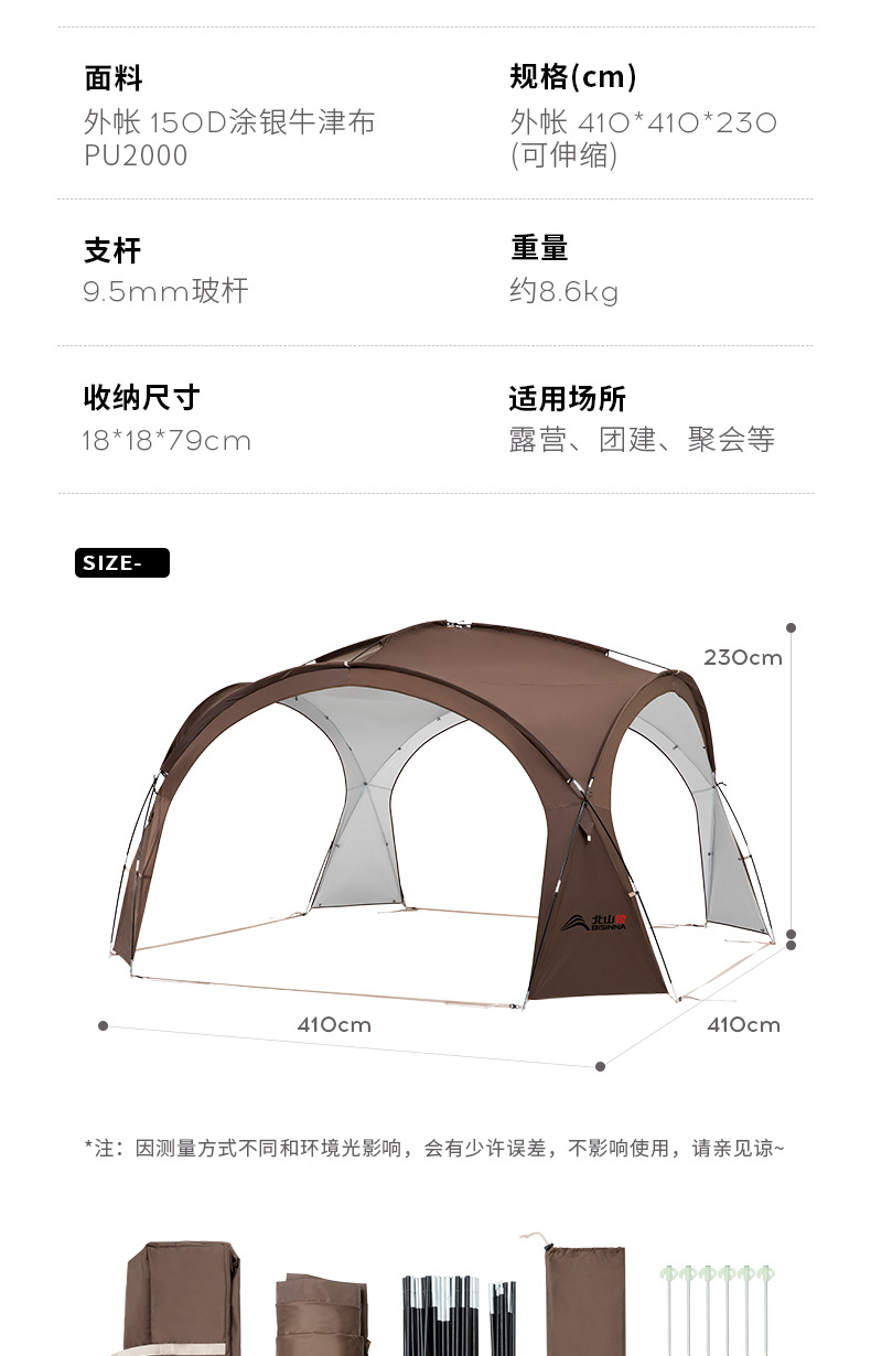 北山狼モンゴル包ドーム天幕テント屋外塗装銀日焼け止めキャンプ大空間防風防雨日除け棚