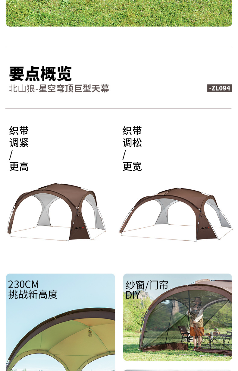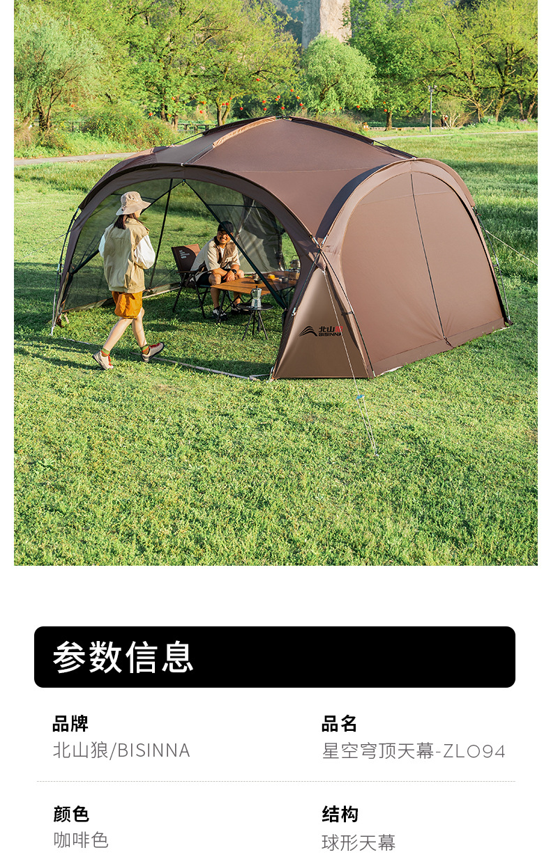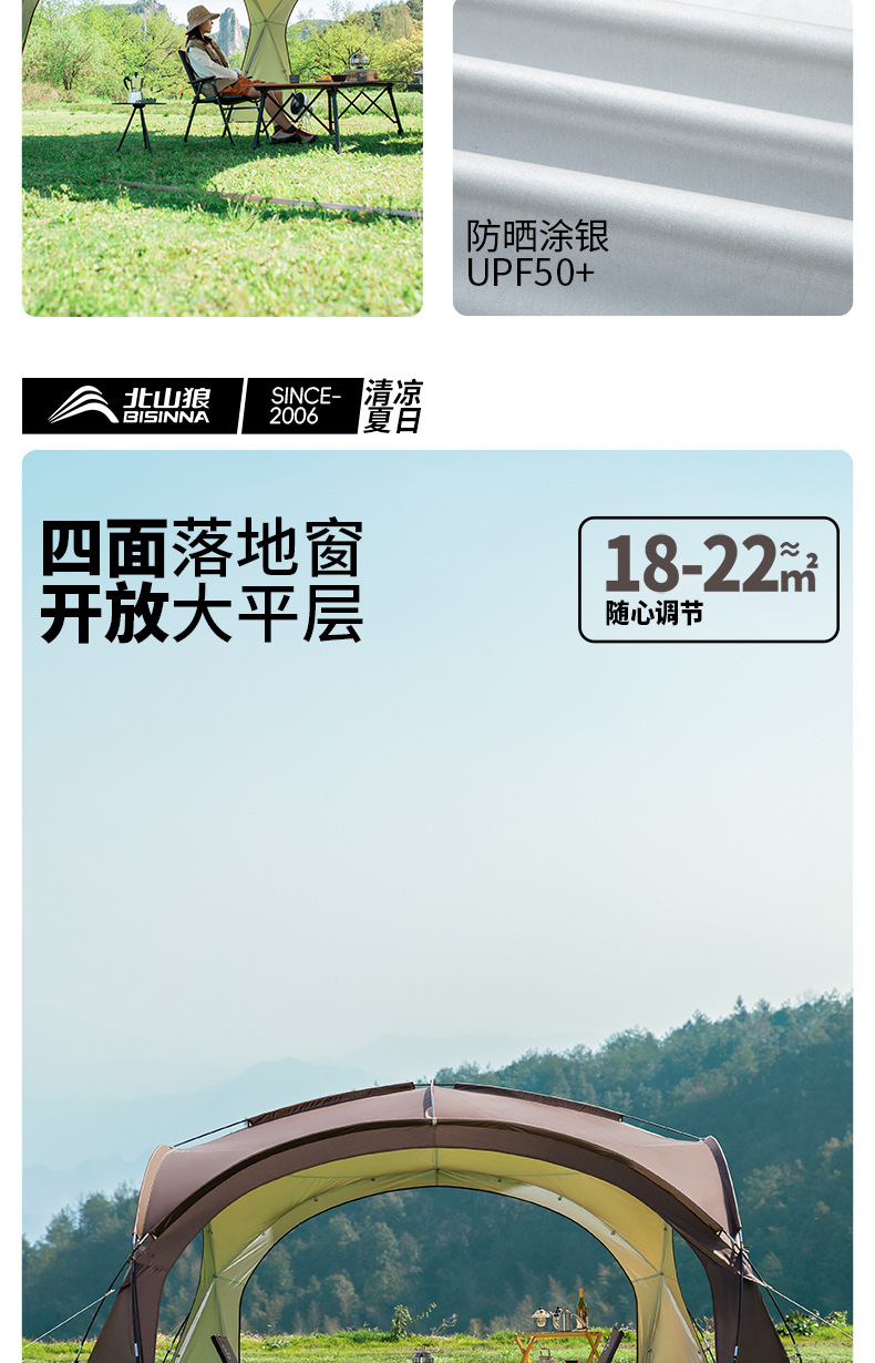 北山狼蒙古包穹顶天幕帐篷户外黑胶防晒露营大空间防风防雨遮阳棚