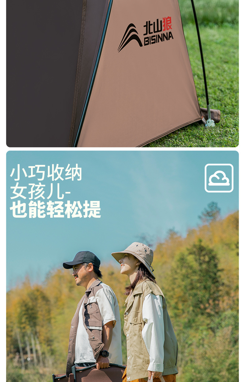 北山狼黒胶速开免ドーム天幕テント屋外キャンプ装备超大スペース日よけ日よけ