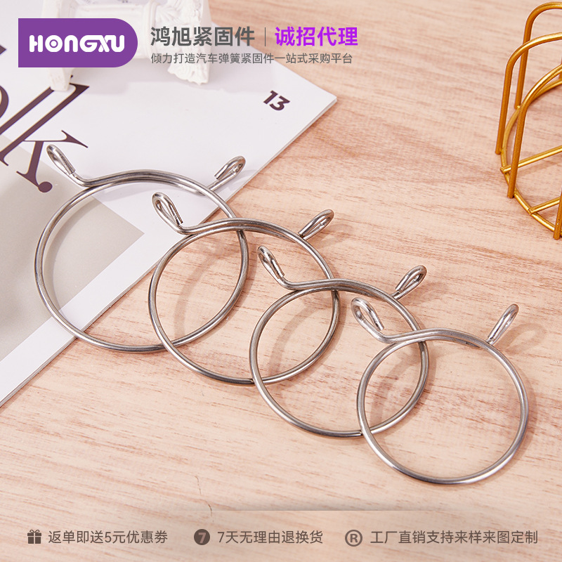 AC304不锈钢弹性卡箍弹簧钢水管油管卡子滴灌环形双钢丝卡扣
