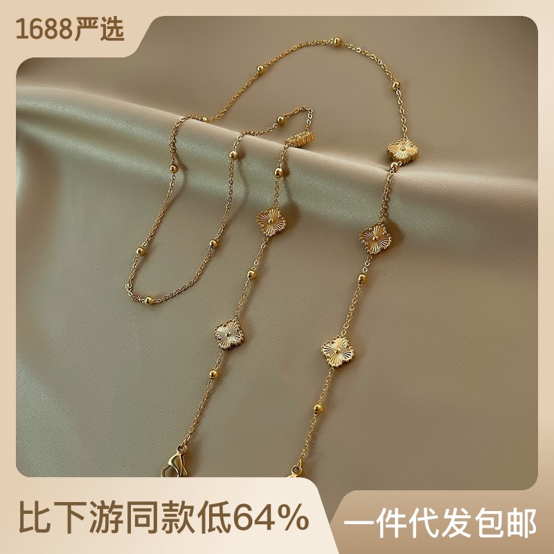ゴールドクローバーマスクメガネチェーン紛失防止ストラップファッション金属チェーンチタン鋼女性潮掛け首気質マスクチェーン