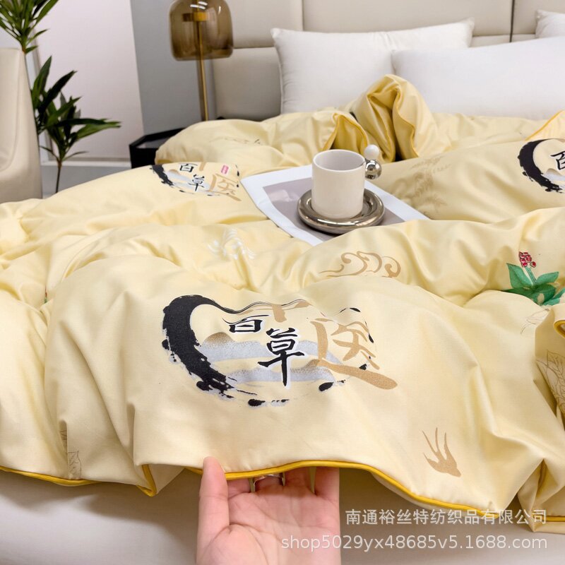 クラスA母子グレードテンセル綿キルティングベッドカバーとボックスシーツ4点セット長繊維綿シルク保護カバー寝具