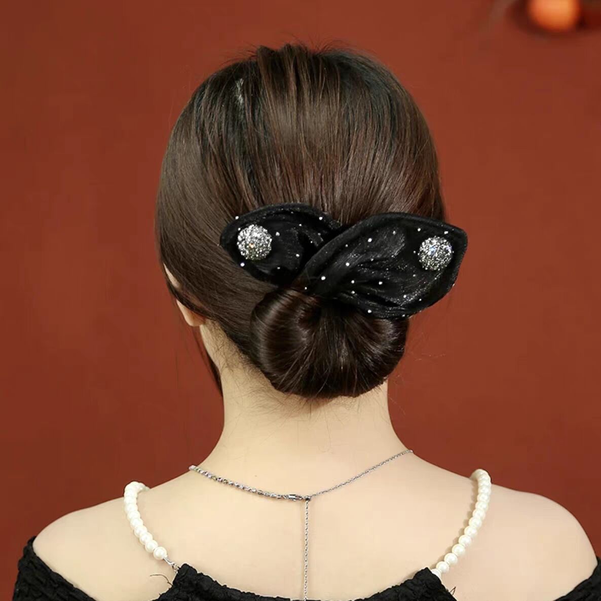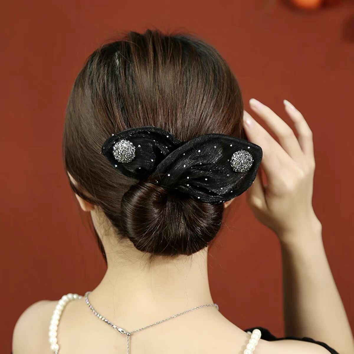韓国版の黒系のシルクのスカーフの髪飾り