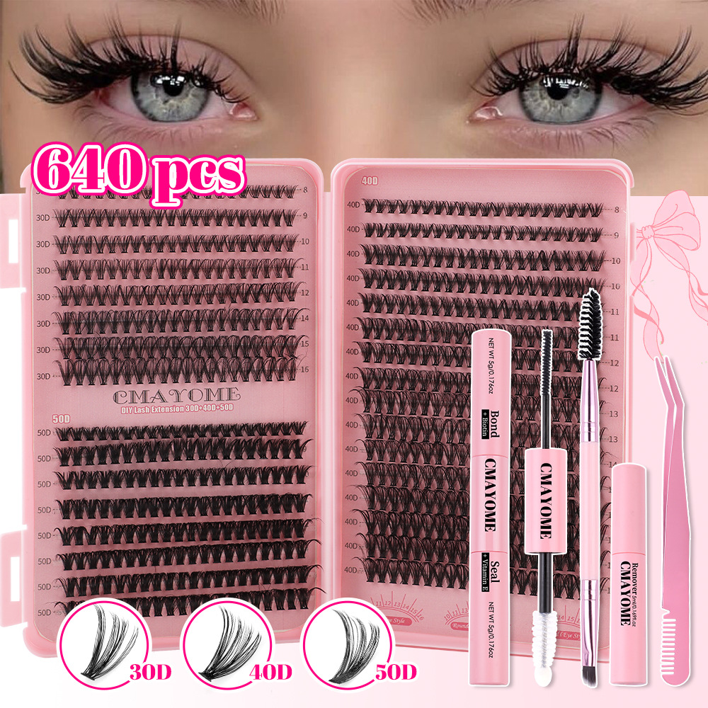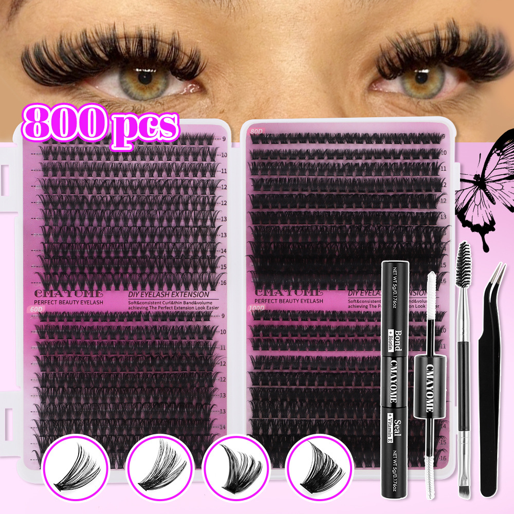 国境を越えて人気の高い大容量DIYつけまつげエクステンションセット、自然で濃密なDカーブのセグメント化されたセルフグラフトシングルクラスターまつげ