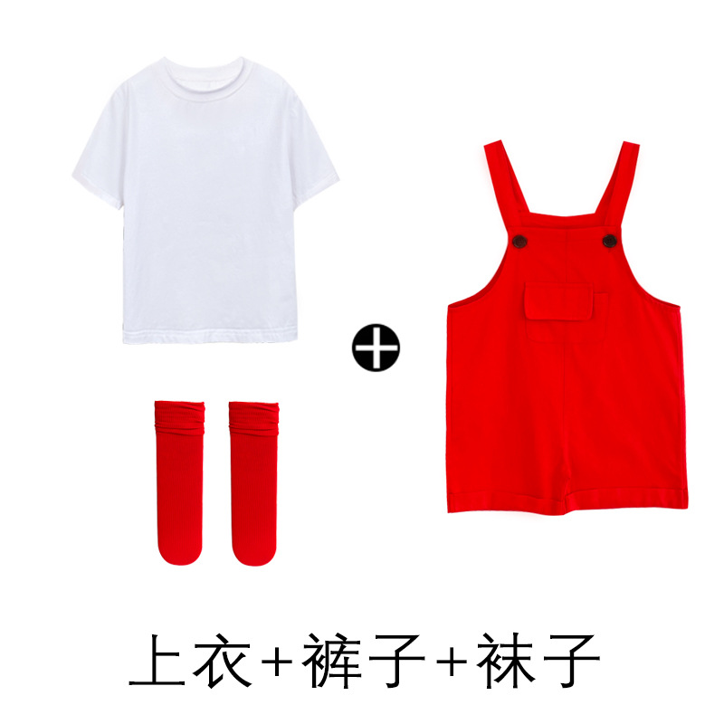 六一子供ストラップ半ズボンキャンディー色セット夏小学生幼稚園大合唱ダンス服演技服