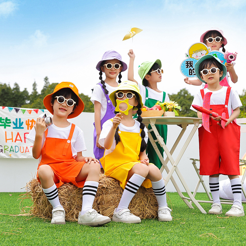 幼儿园元旦小学生表演服装背带裤套装运动会儿童合唱啦啦队演出服
