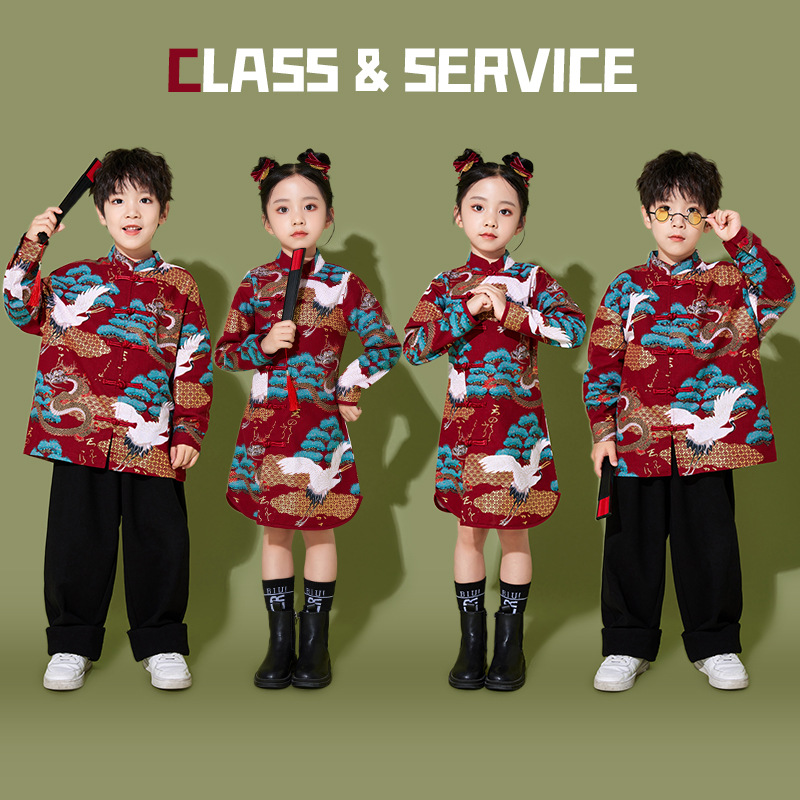子供応援団青花磁器中国風演出服小学生運動会開会式班服合唱演技服