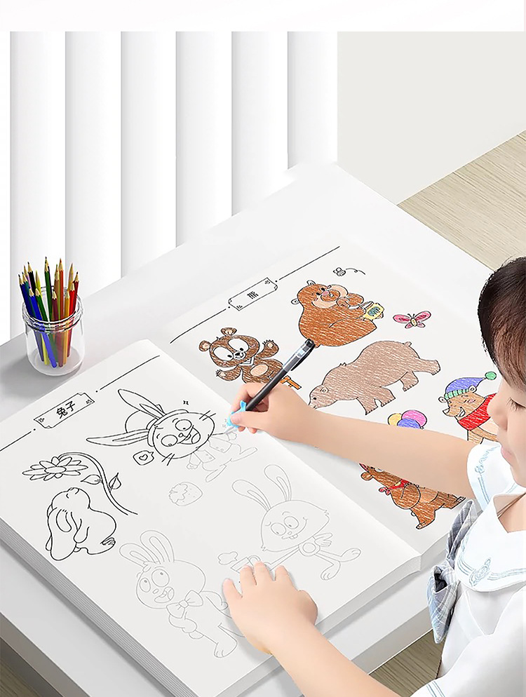 幼稚園のコントロールペンの訓練の線画は絵本の子供の絵をなぞって本を塗ります。