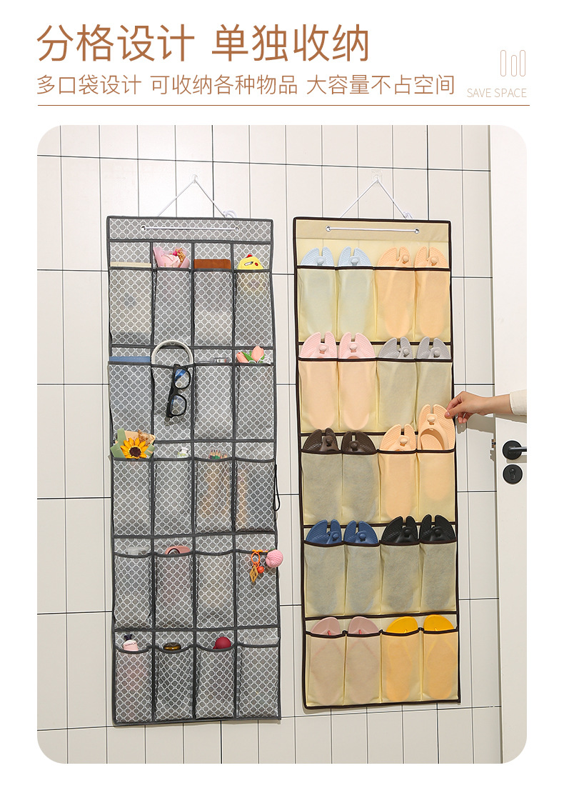 ドアの後に収納して袋を掛けます。寮の壁掛け式の靴の雑物は収納袋を分けて整理します。
