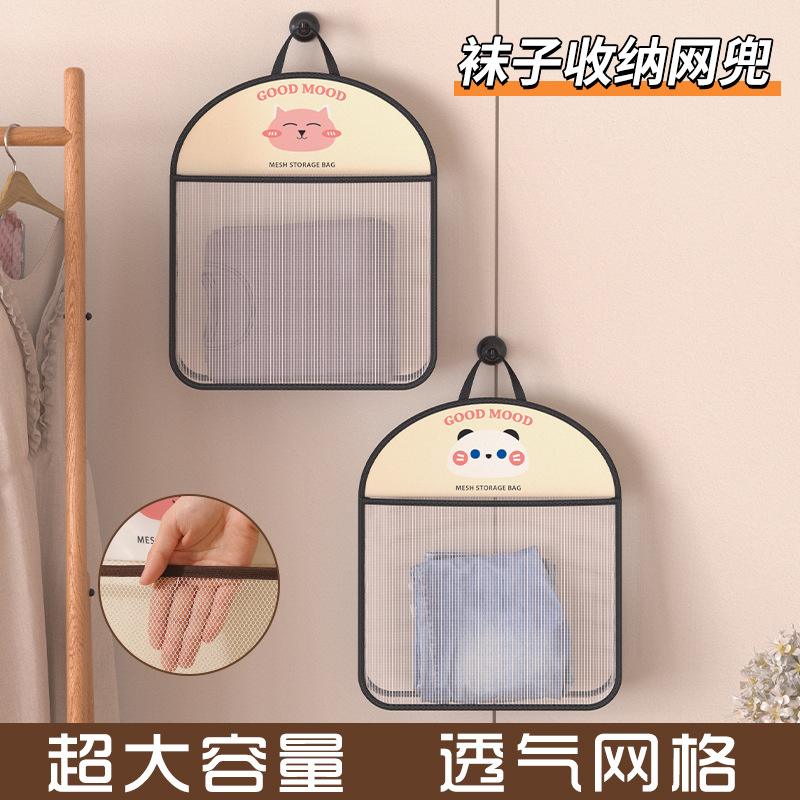 卡通宿舍挂袋多层分区衣柜挂式内衣裤收纳袋网纱透气可视储物挂袋
