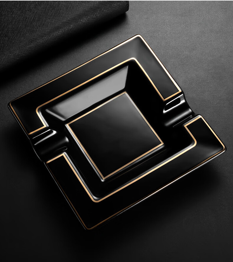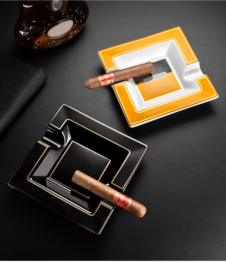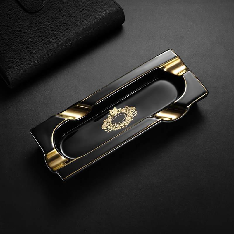 シガー灰皿陶磁器質感多口径煙槽亮金描辺シガー専用灰皿
