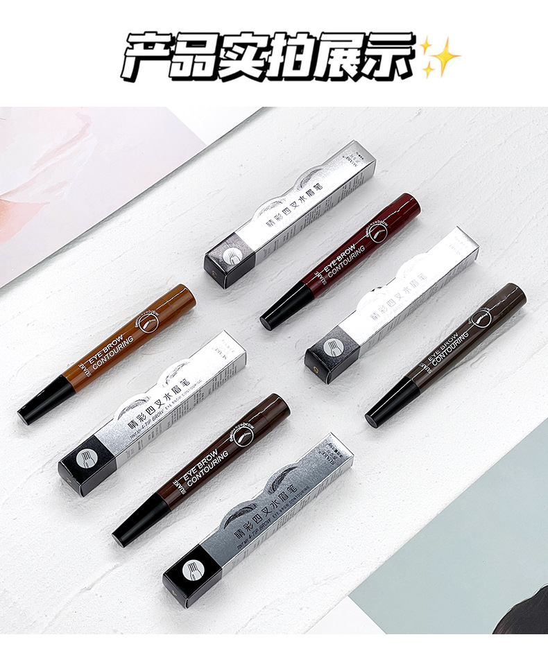 2025年新作四叉アイブロウペンシルは根元がはっきりしていて、自然で長持ちし、にじまず、防水性、耐汗性、色褪せしないクロスボーダーです。