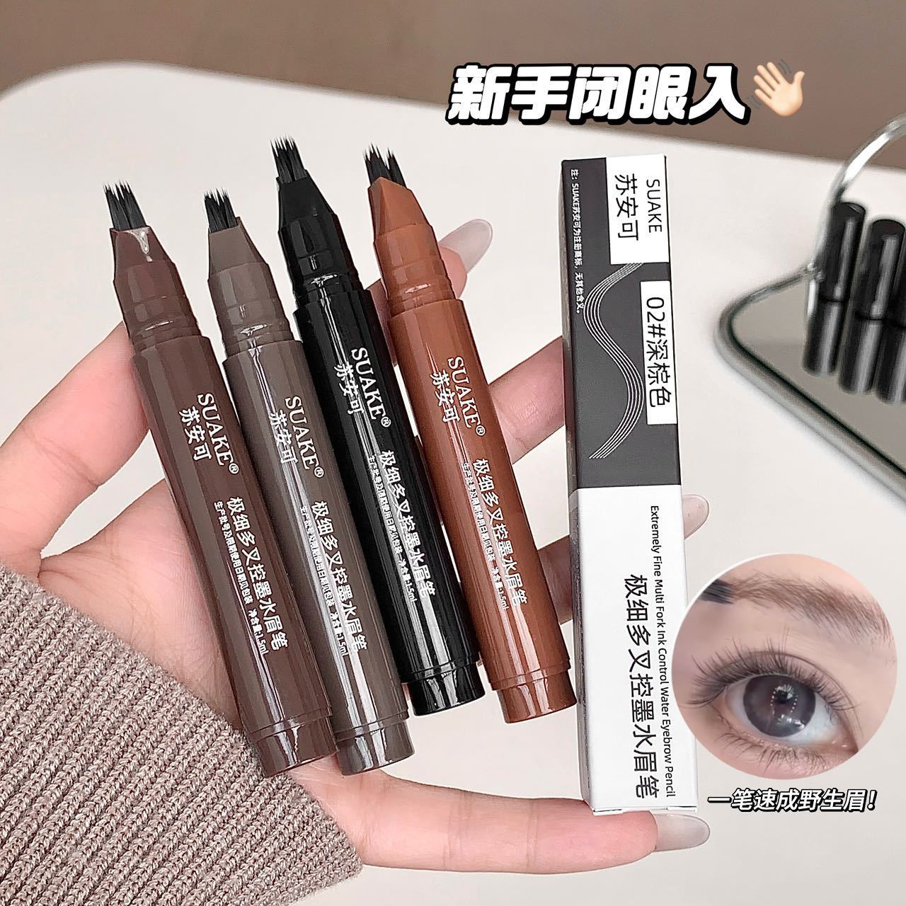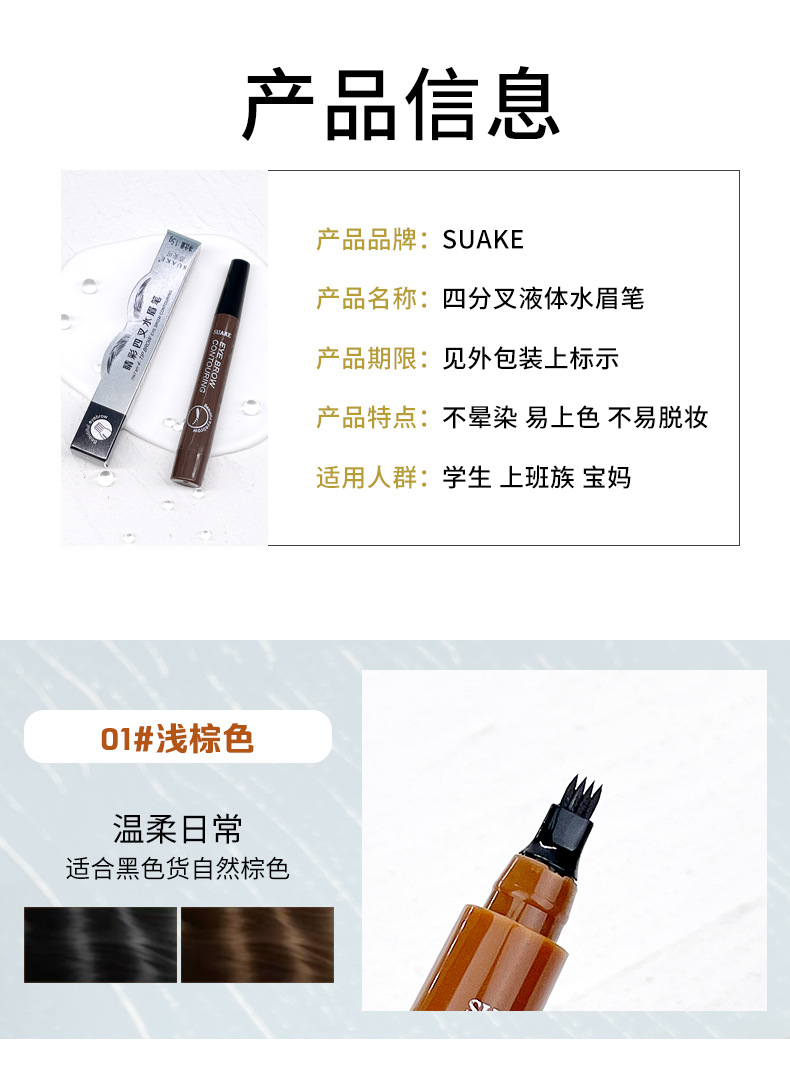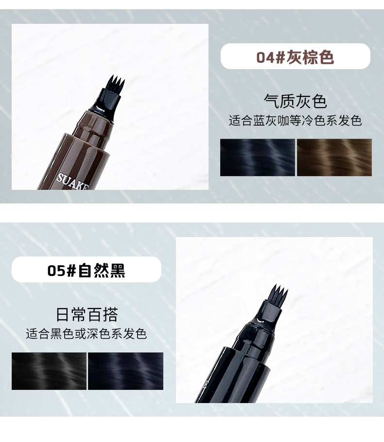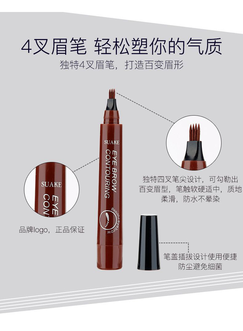 SUAKE4色纤细多叉头眉笔控墨液体眉笔仿真野生眉更分分明持妆自然