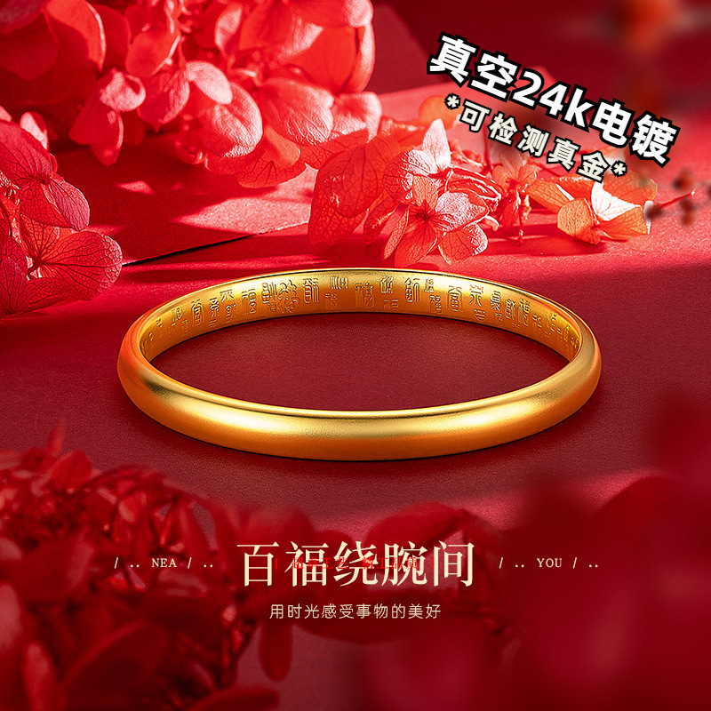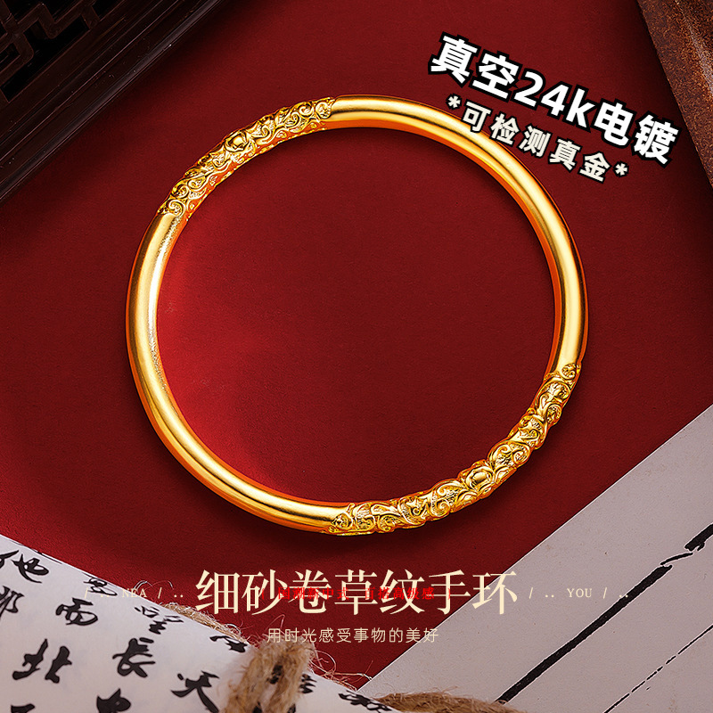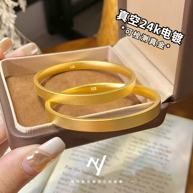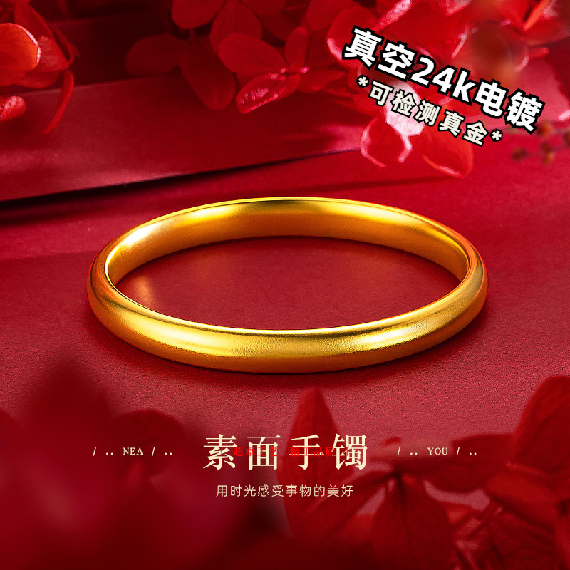 批发真空24k电镀金包铜古法传承手镯 小红书抖音久不掉色素圈镯子