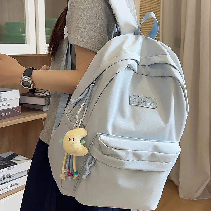 2025高中生书包女 初中生学院风双肩包 纯色大学生简约百搭背包