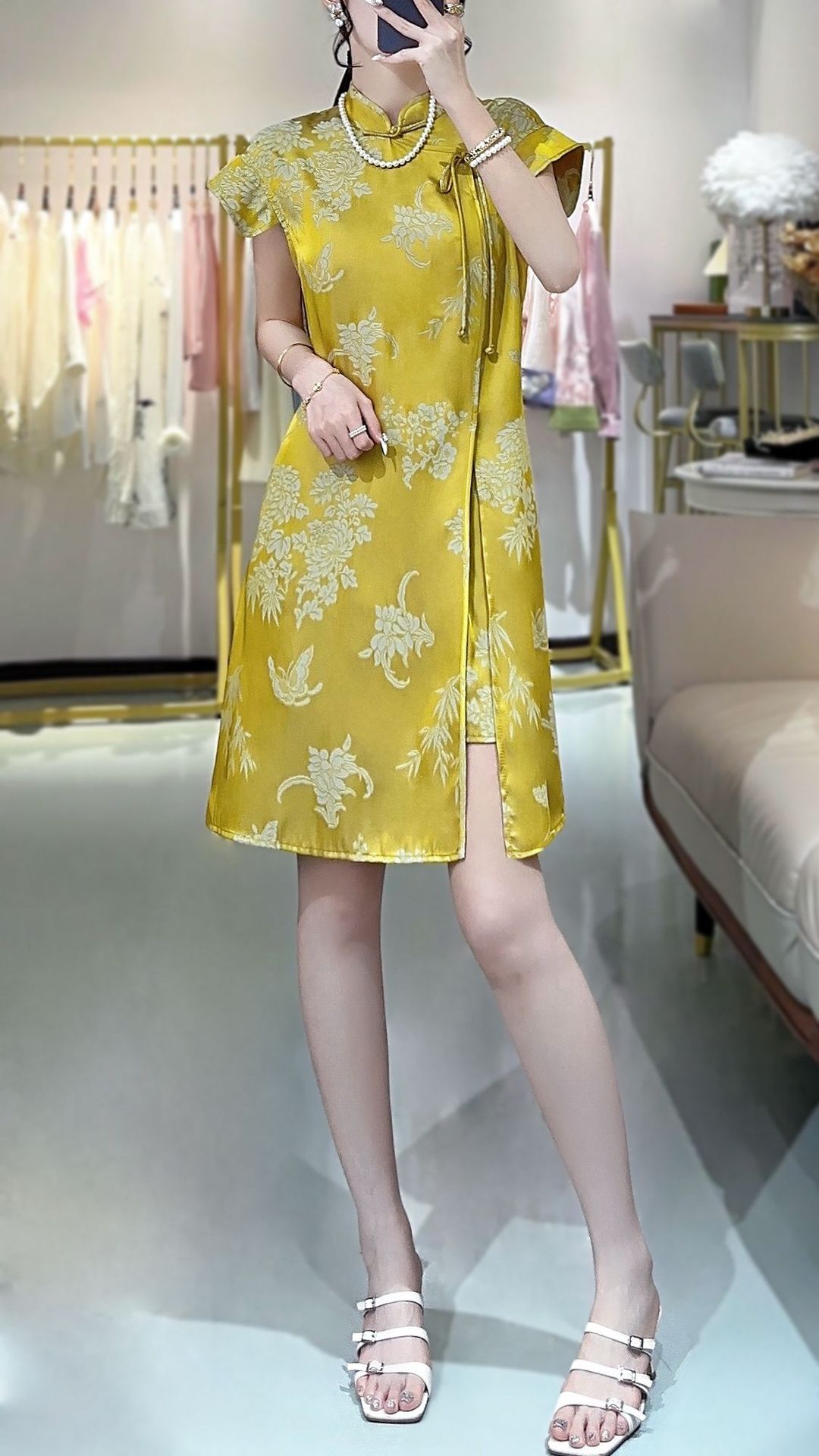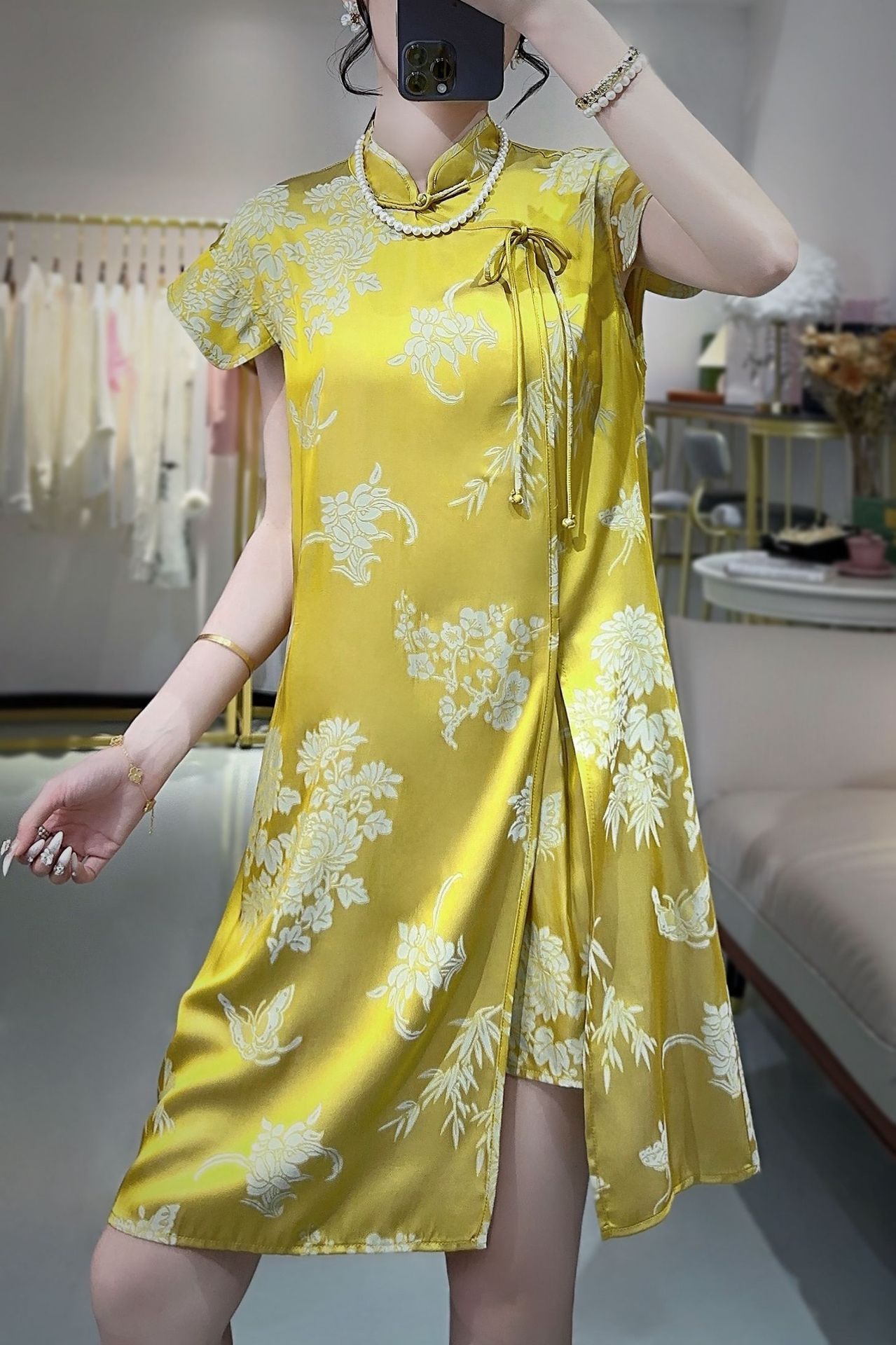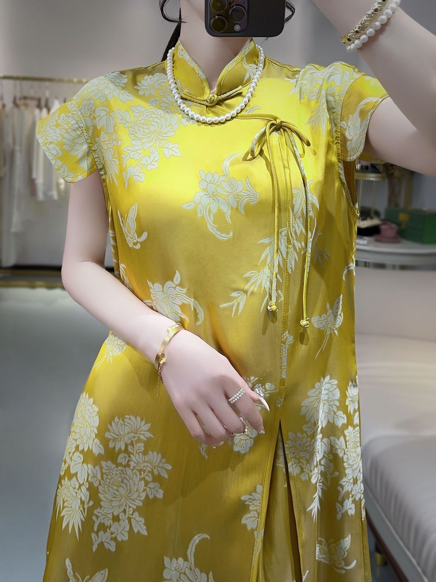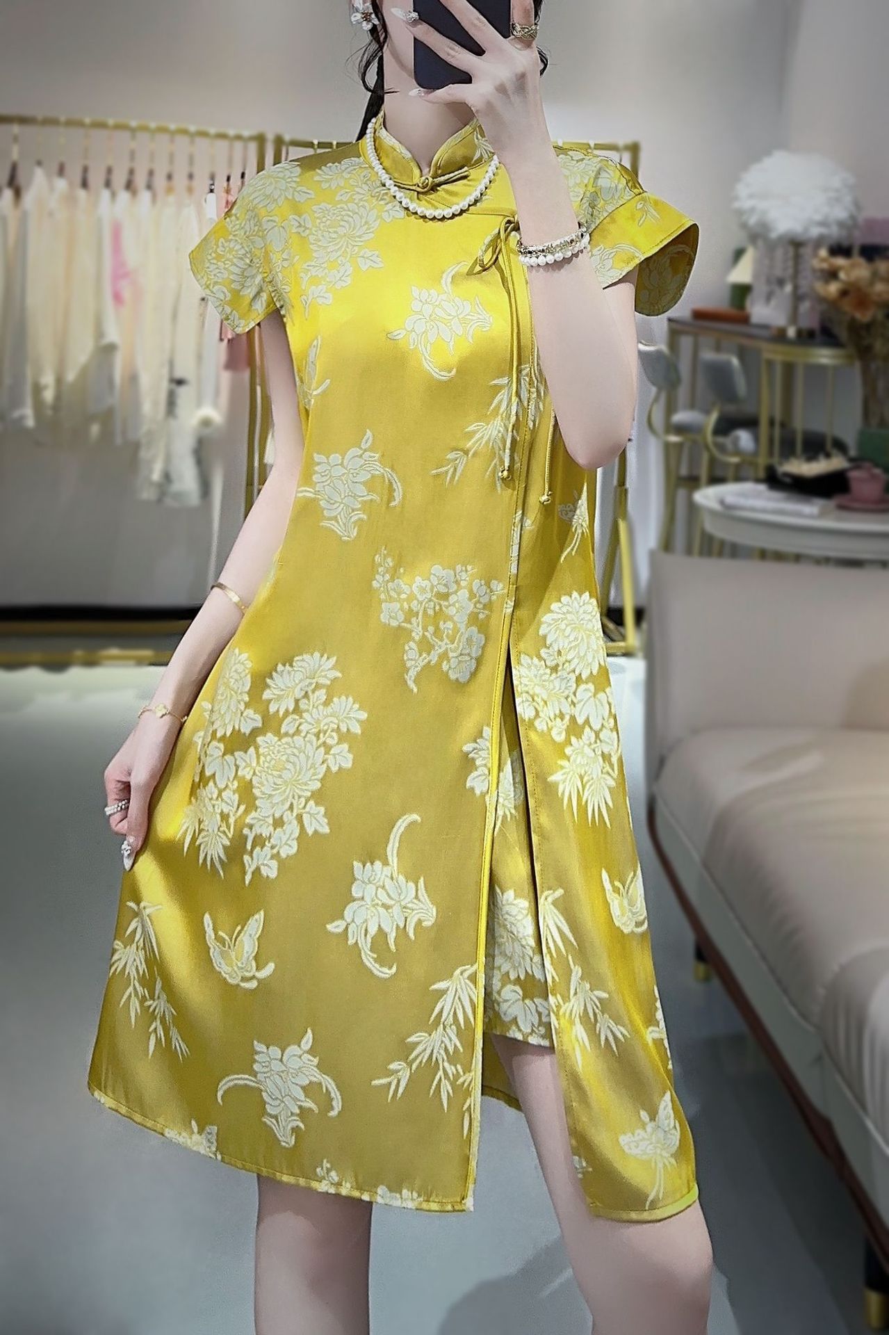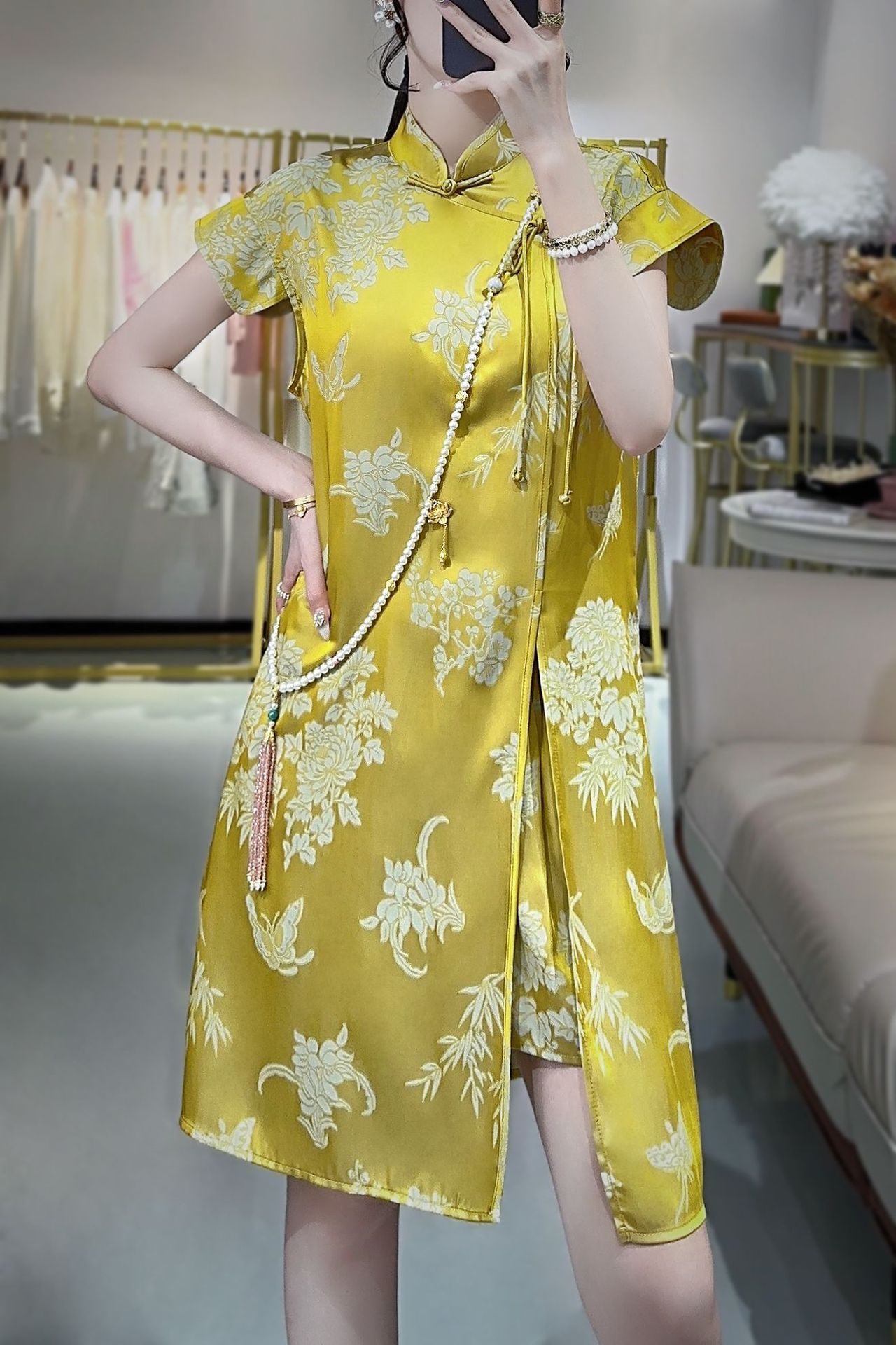 蘭汐の新型中国式二色のシルクジャカード梅蘭竹菊四君子ジャカードチャイナドレスセット二点セット