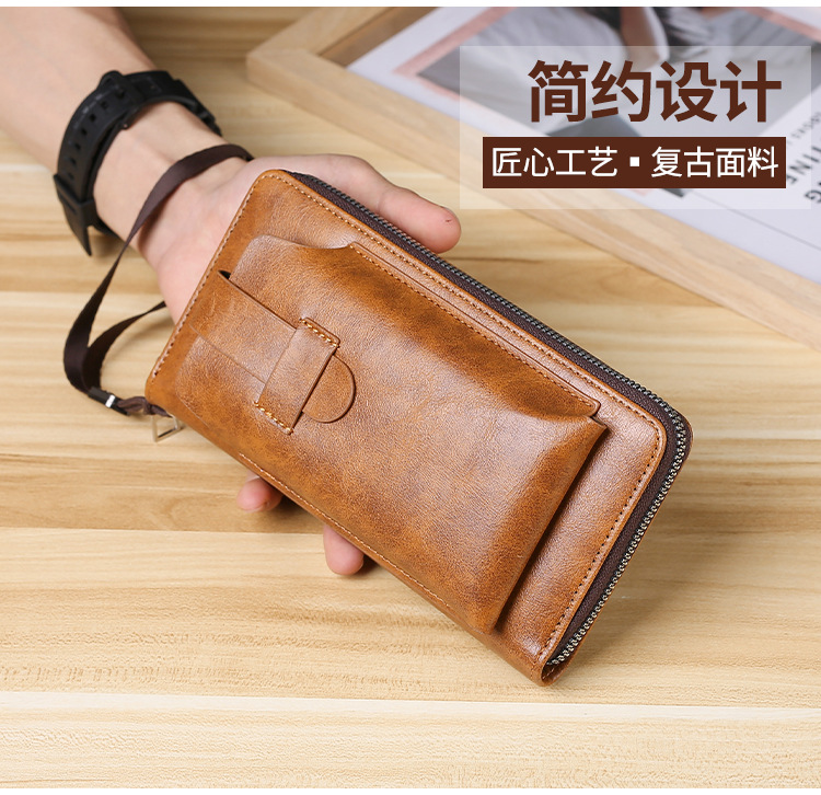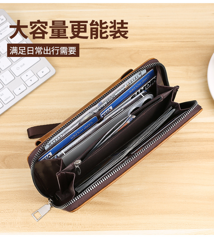 メンズ财布长い新商品革挟みマルチカードホルダー二合一男ビジネスファスナー多机能携帯バッグオリジナル