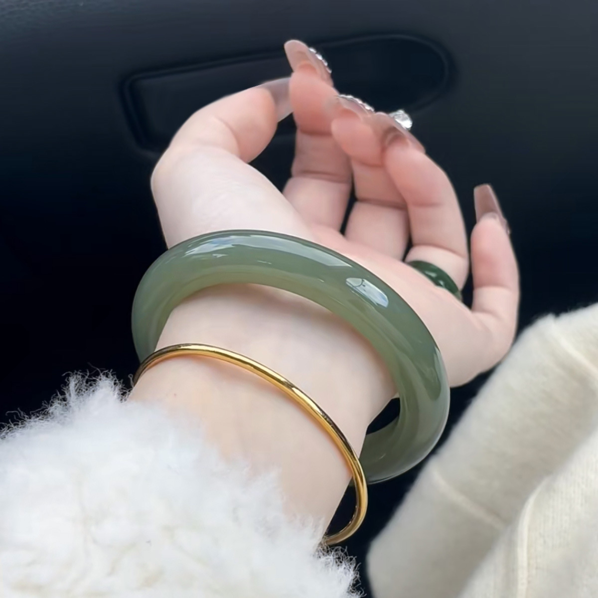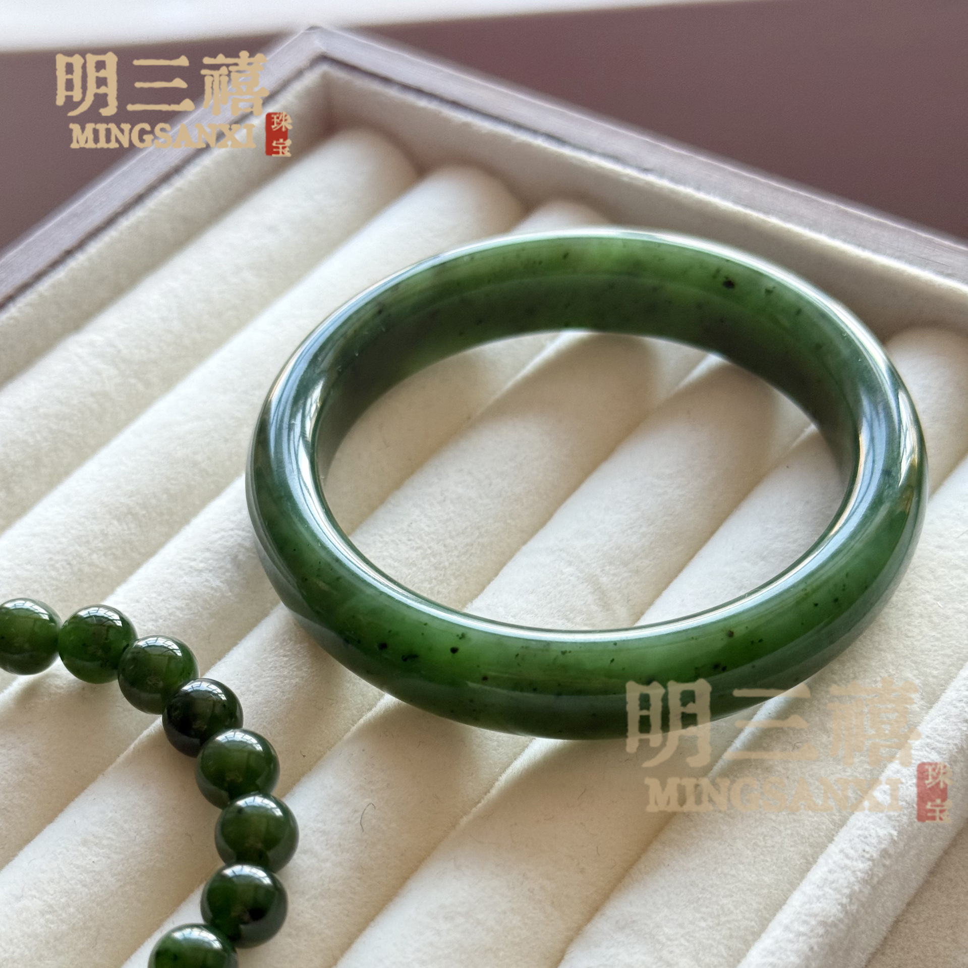 新疆ホータン翡翠ブレスレット、碧玉平安翡翠ブレスレット、女性用ワイドストリップほうれん草グリーンビューティーモールス湖水グリーン翡翠ブレスレット