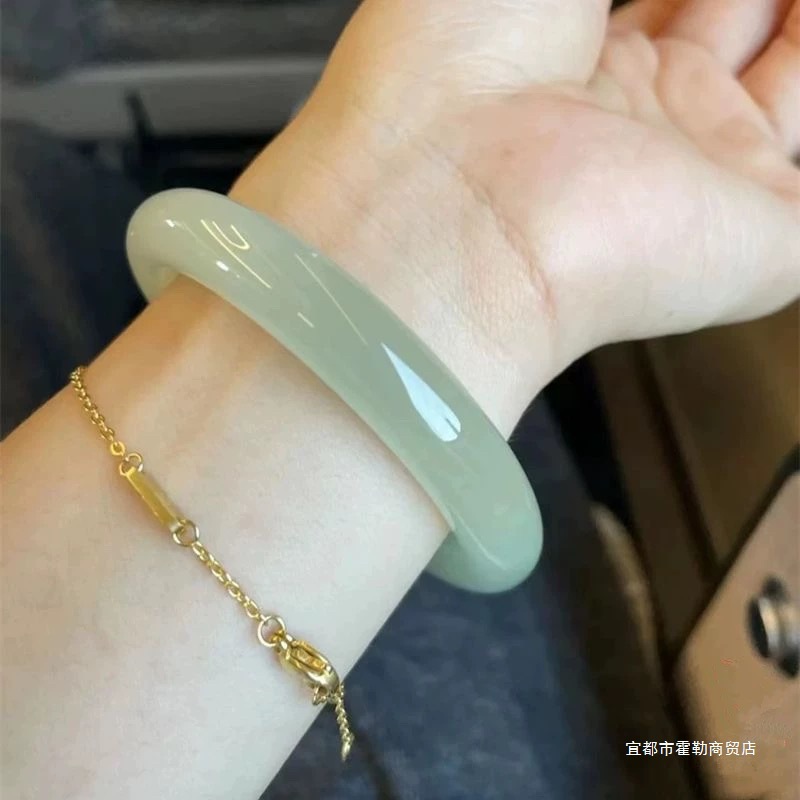 新疆和田玉晴水ブレスレット女性高氷透青白玉平条寛版天然正品玉ブレスレット