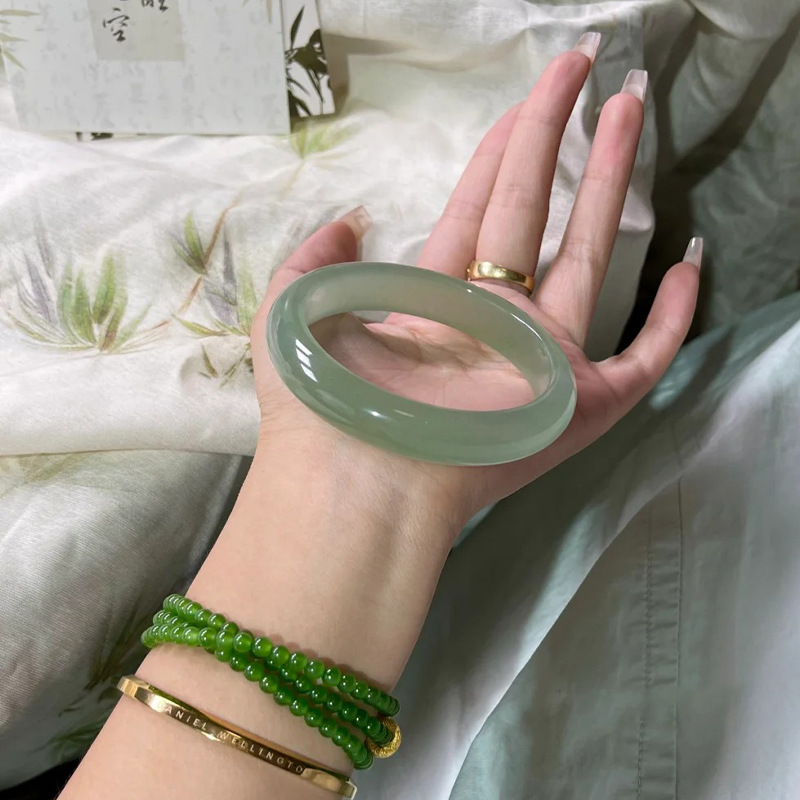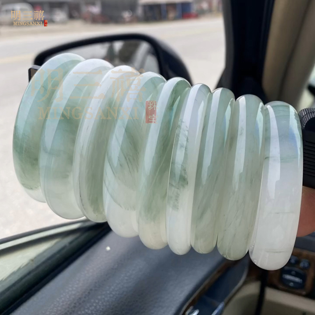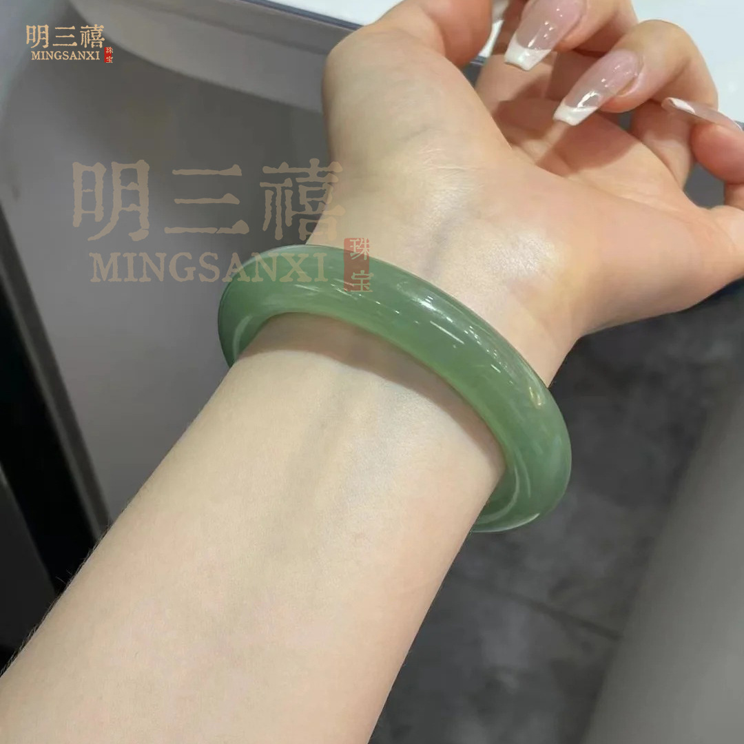 金糸玉高氷円条ブレスレット天翠山漂花平条新疆翠玉雪域氷翠さんブレスレット卸売り