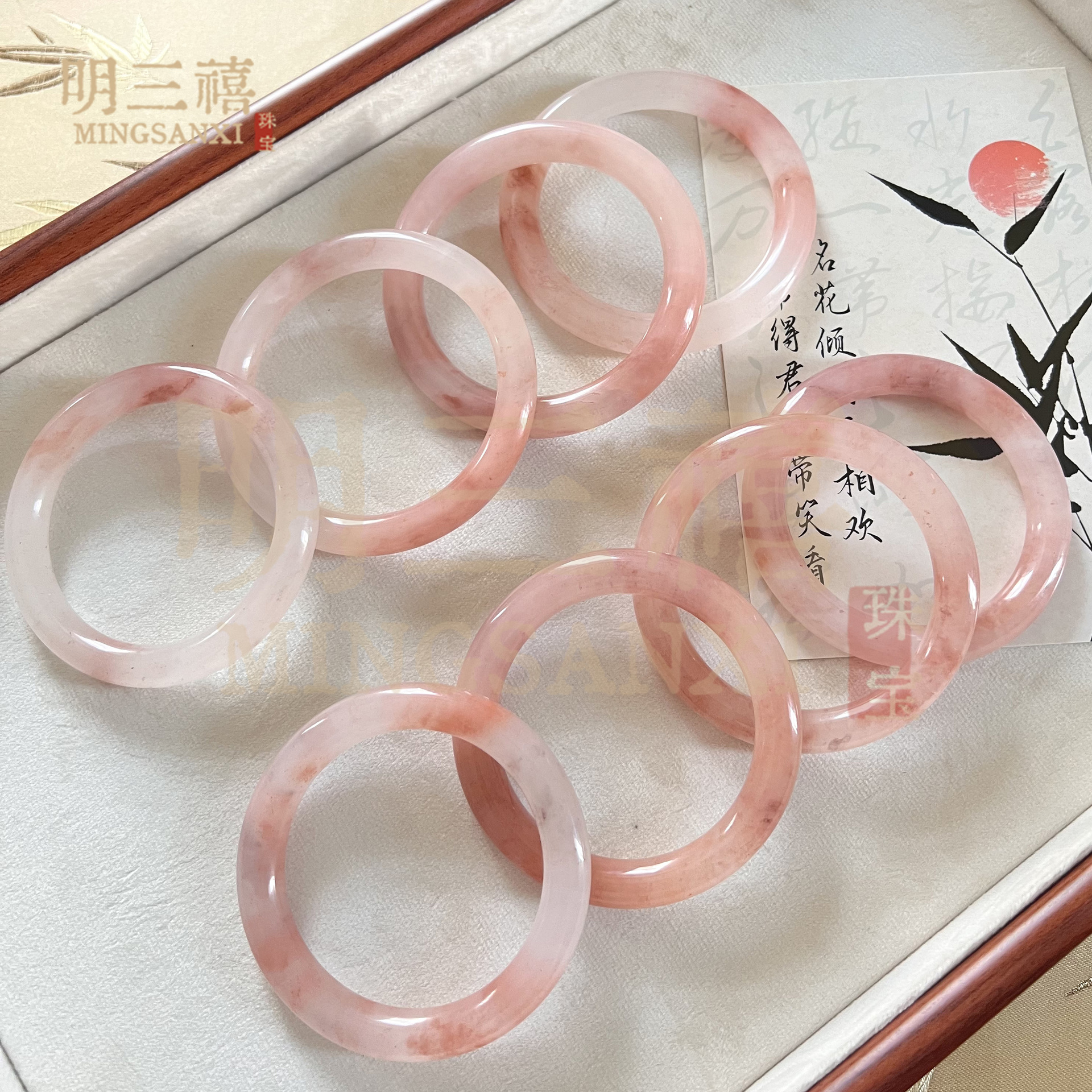 金糸玉ブレスレット無注ゴム円ブレスレット新疆桃花醸造天然高氷透西柚色玉ブレスレット