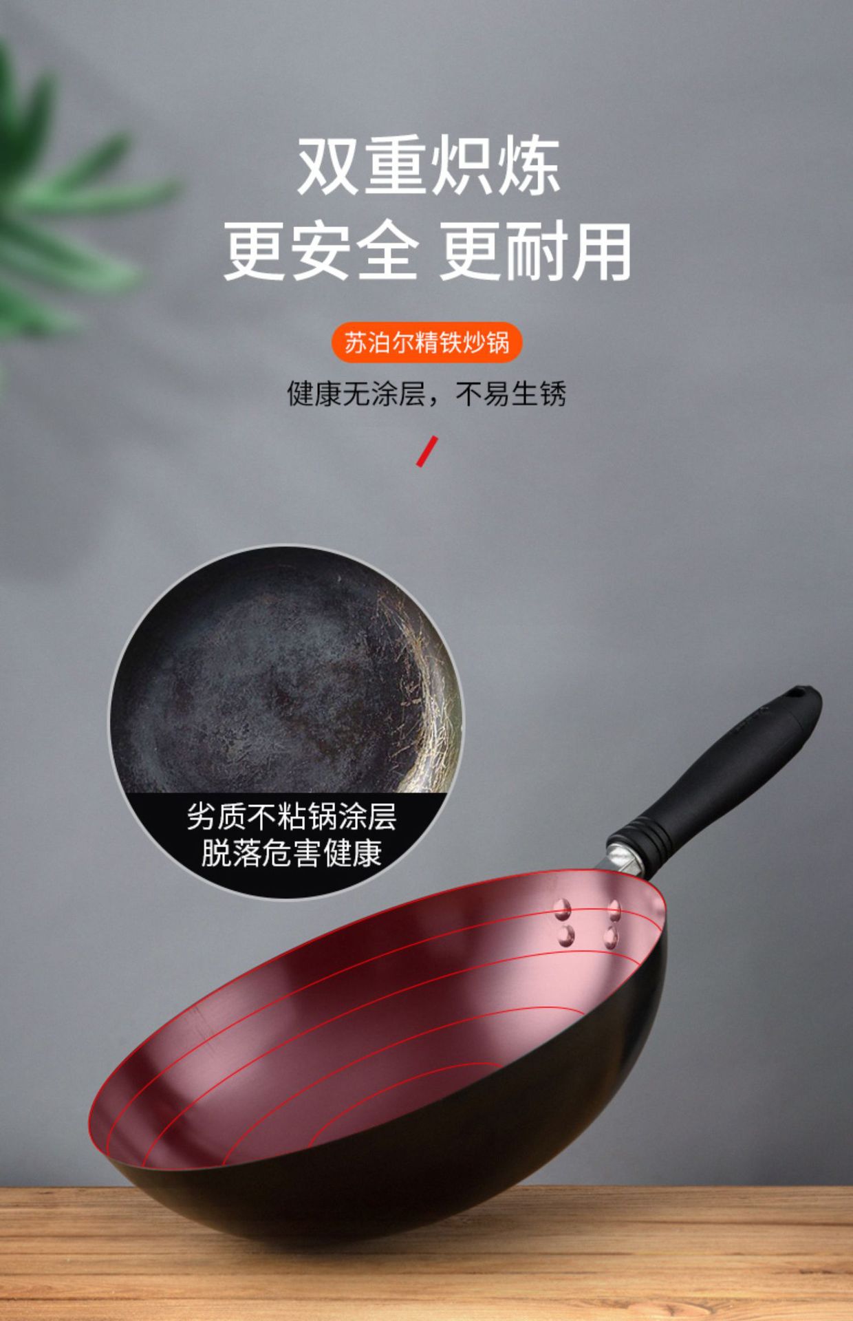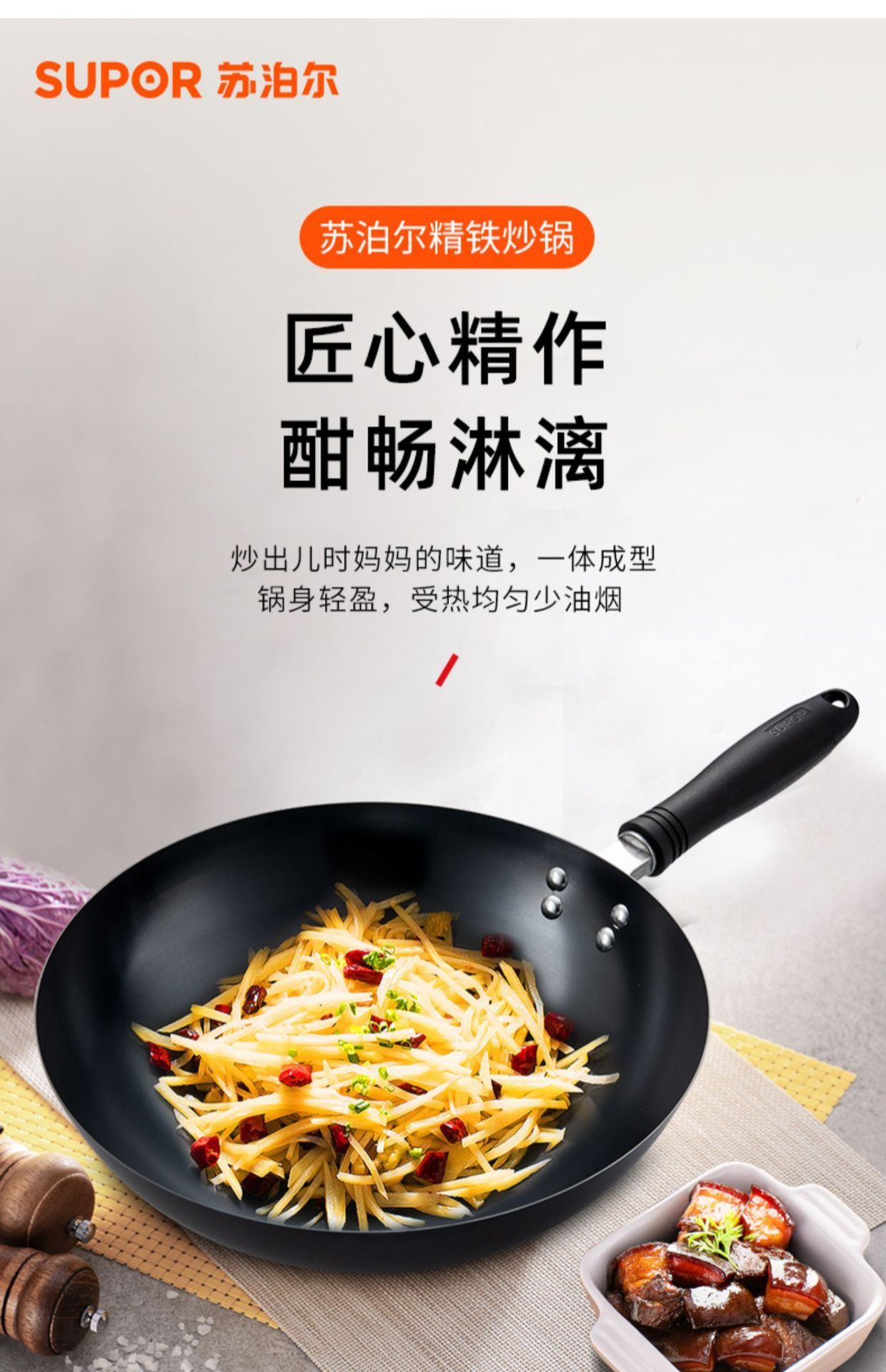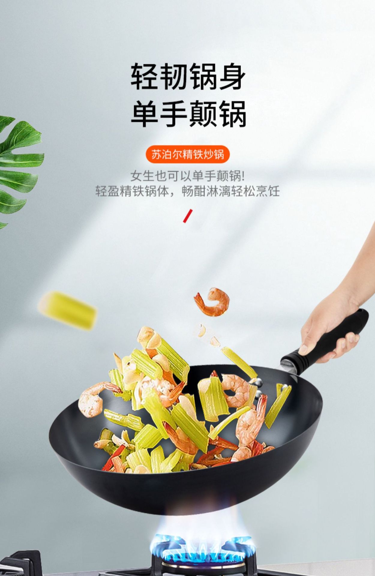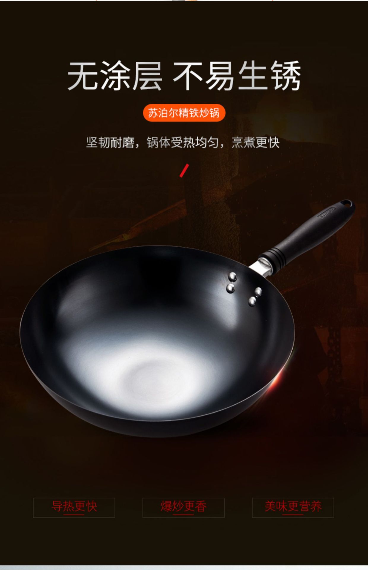 蘇泊爾鉄鍋家庭用炒め鍋はコーティングがなくて軽量です。