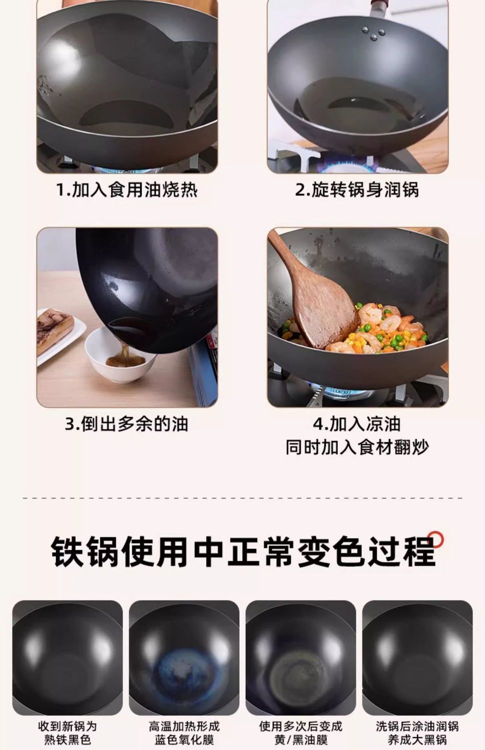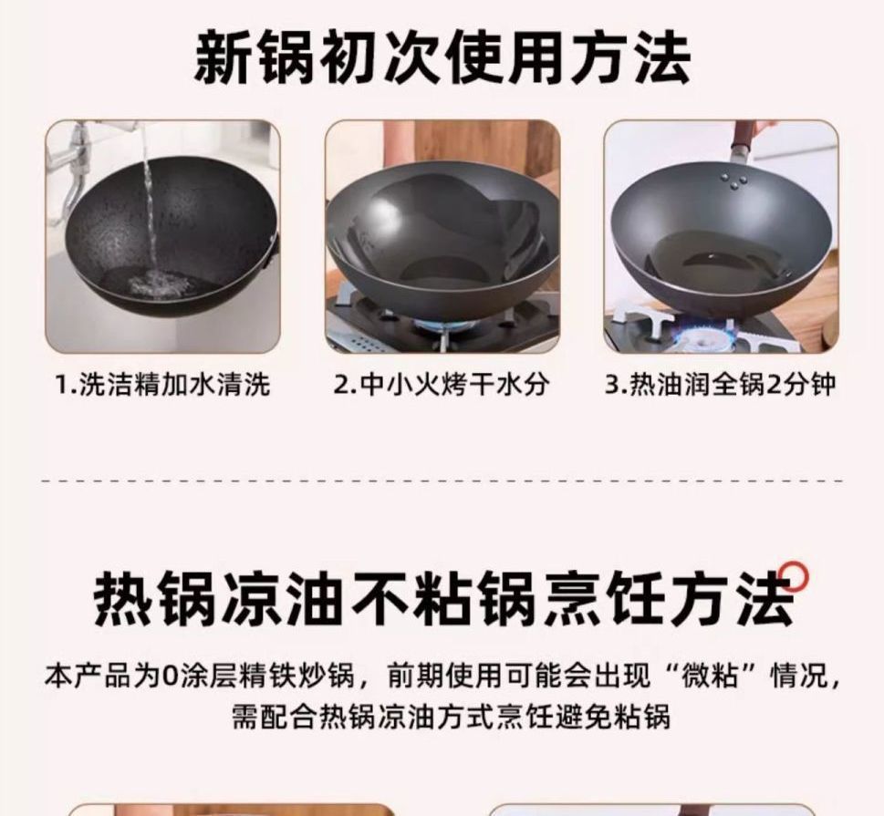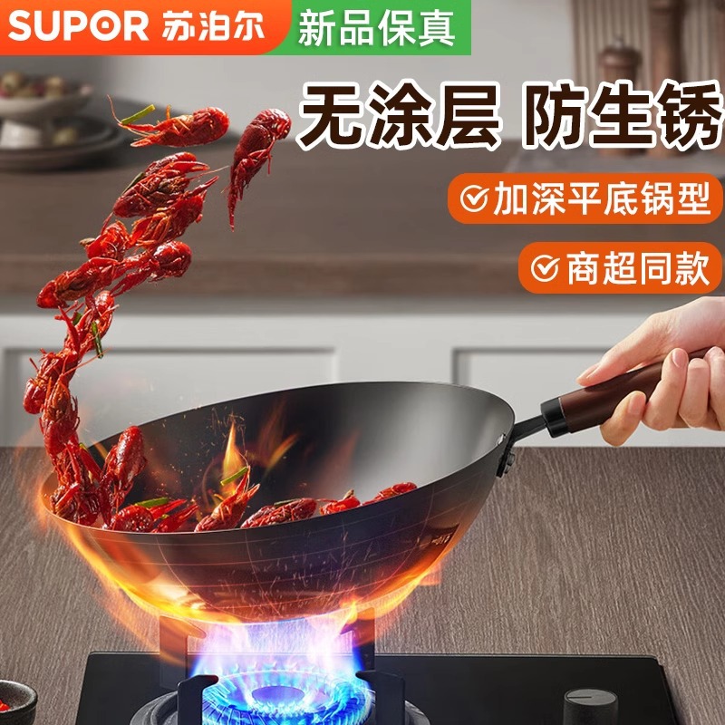 蘇泊爾精鉄炒め鍋旧式無コーティング家庭用炒め鍋伝統鉄鍋ガスコンロ専用熟大鉄鍋