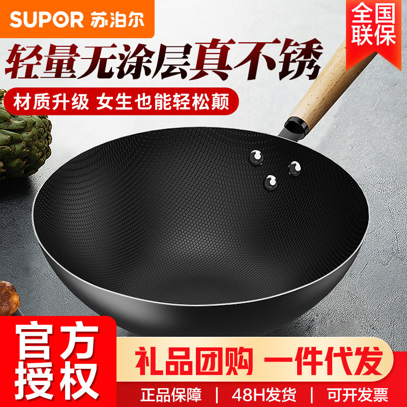 蘇泊爾鉄鍋炒め鍋家庭用炒め鍋旧式無コーティングガスコンロ専用精鉄熟鉄鍋