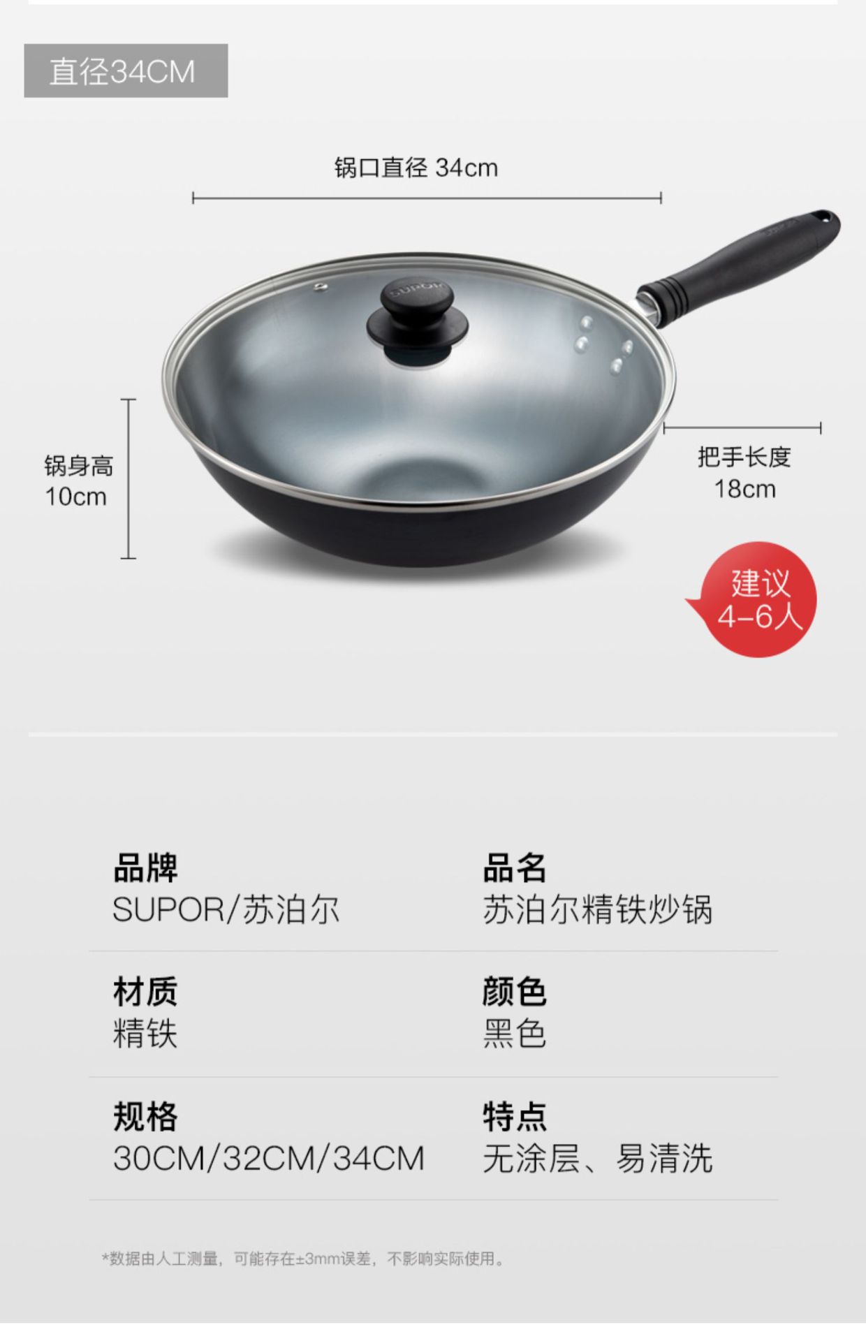 苏泊尔铁锅家用无涂层不锈炒锅老式炒菜锅平底锅铸铁锅电磁炉通用
