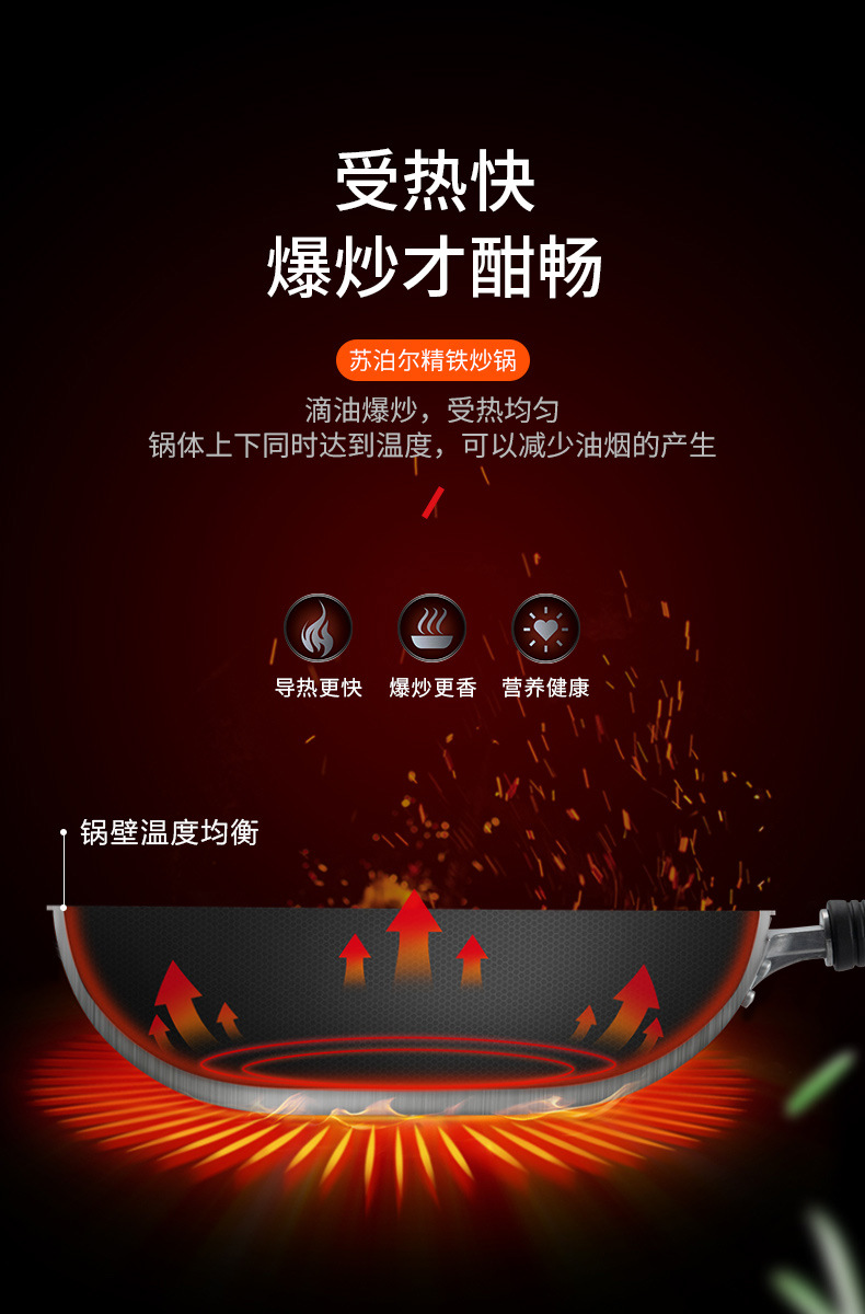蘇泊爾大鉄鍋は鍋にくっつかない家庭用炒め鍋の古いガスレンジ専用のコーティングなしガスレンジが適用されます。