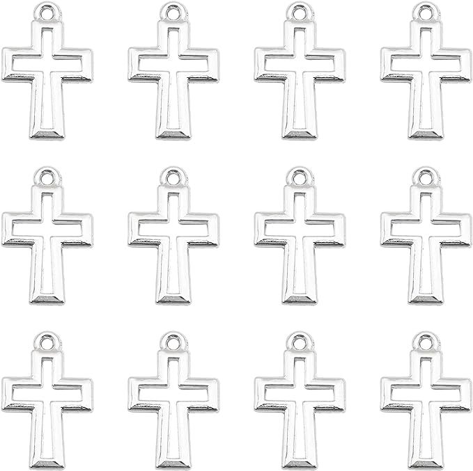 Diy合金アクセサリーの金銀色の透かし彫りのクロスのペンダントの耳飾りのブレスレットのネックレスのペンダントの200個の1包み