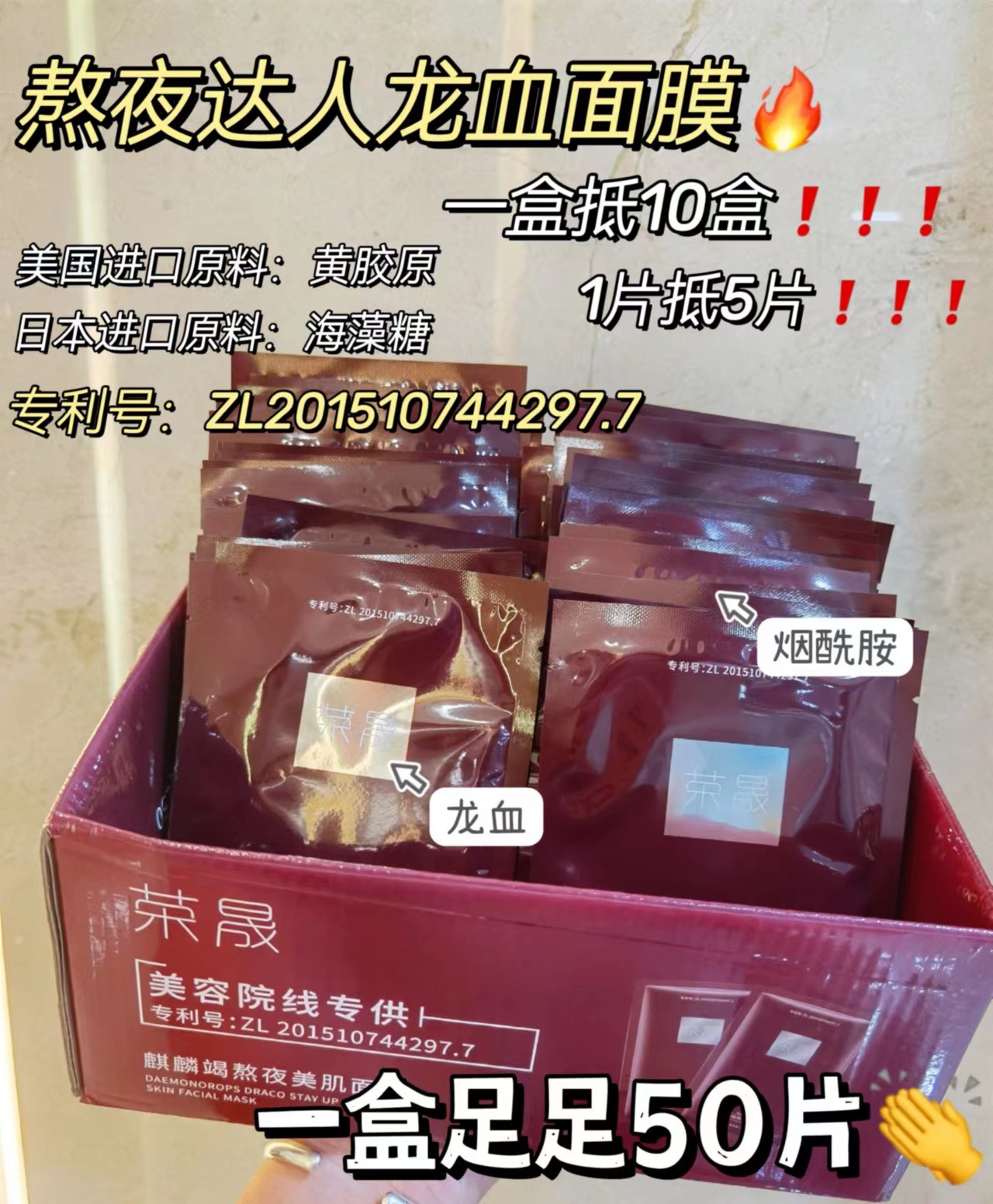 【50枚】栄晟夜更かしの達人龍血マスク毛穴をきれいにしてニキビ跡を薄めて肌の色を明るくします。