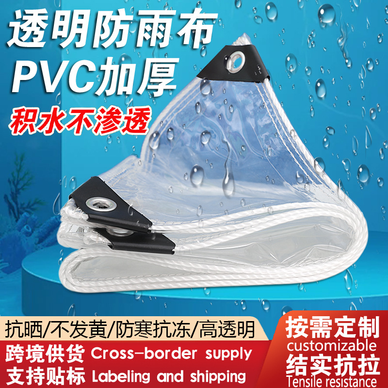 跨境PVC透明防雨布阳台加厚防水布透光软玻璃大棚保温透明防雨布