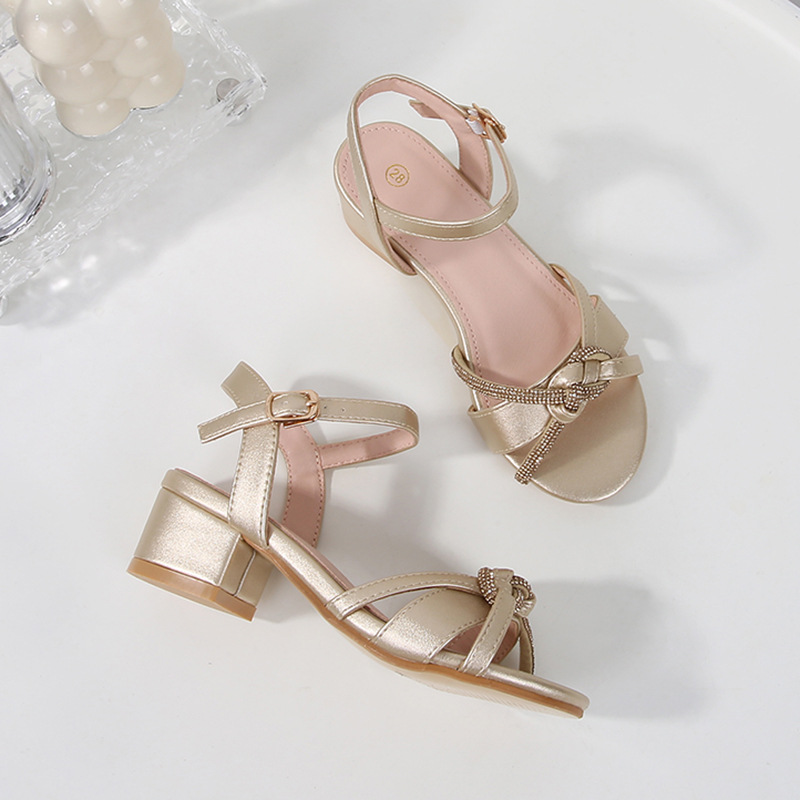 公主鞋女童2025新款演出配礼服水晶儿童高跟凉鞋