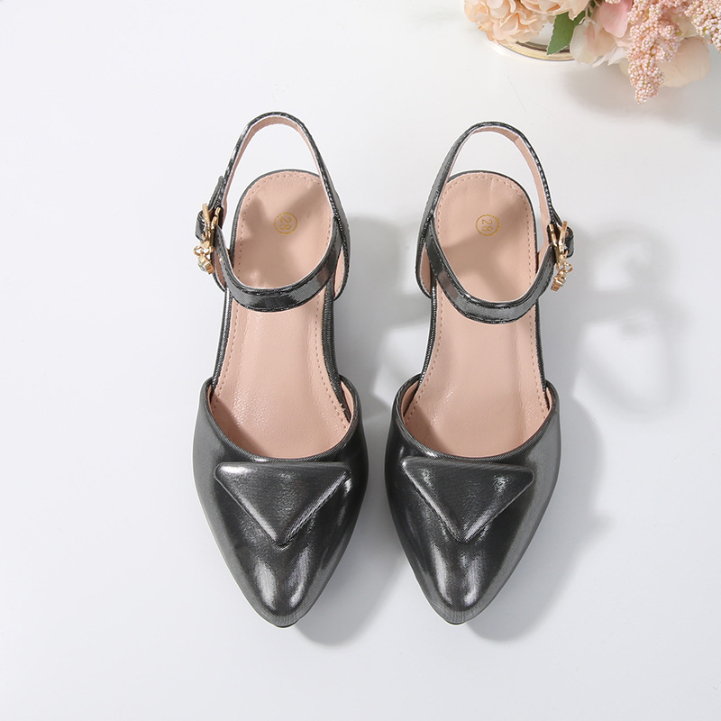 现货2025新款三角标后空低跟凉鞋高端迷你尖头后空高跟凉鞋女铆钉