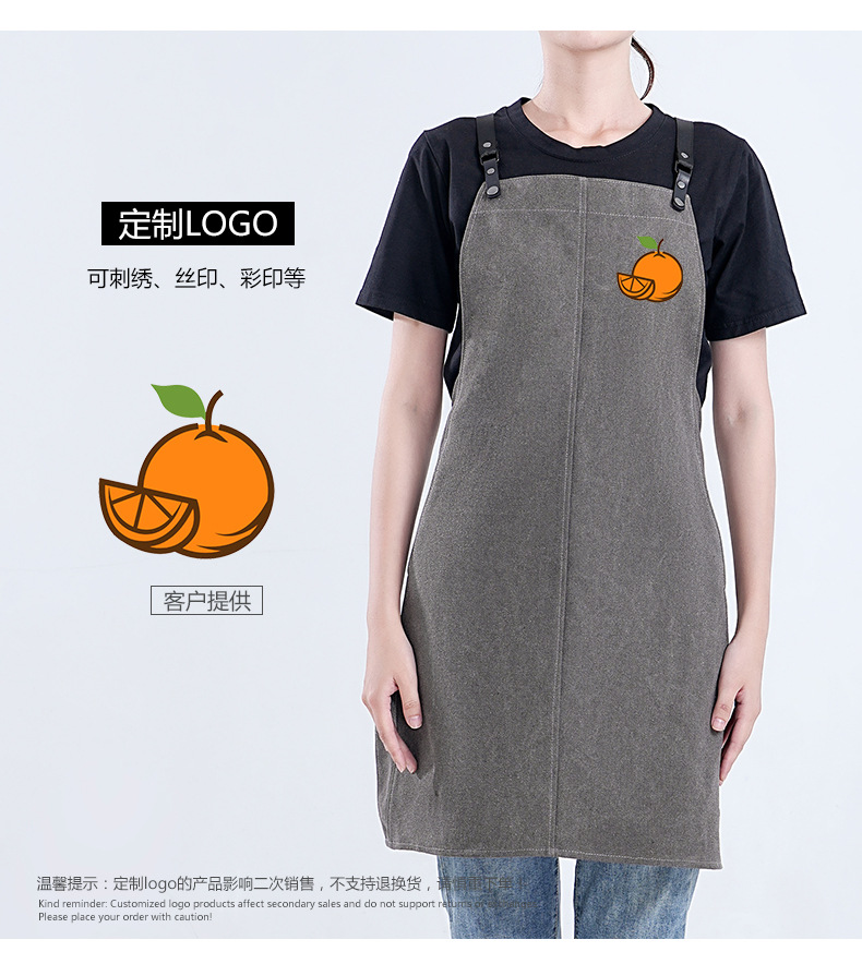 エプロン客定ロゴ花芸ミルクティー焙煎作業服女性レストラン厚手帆布ホテルキッチン理髪師男
