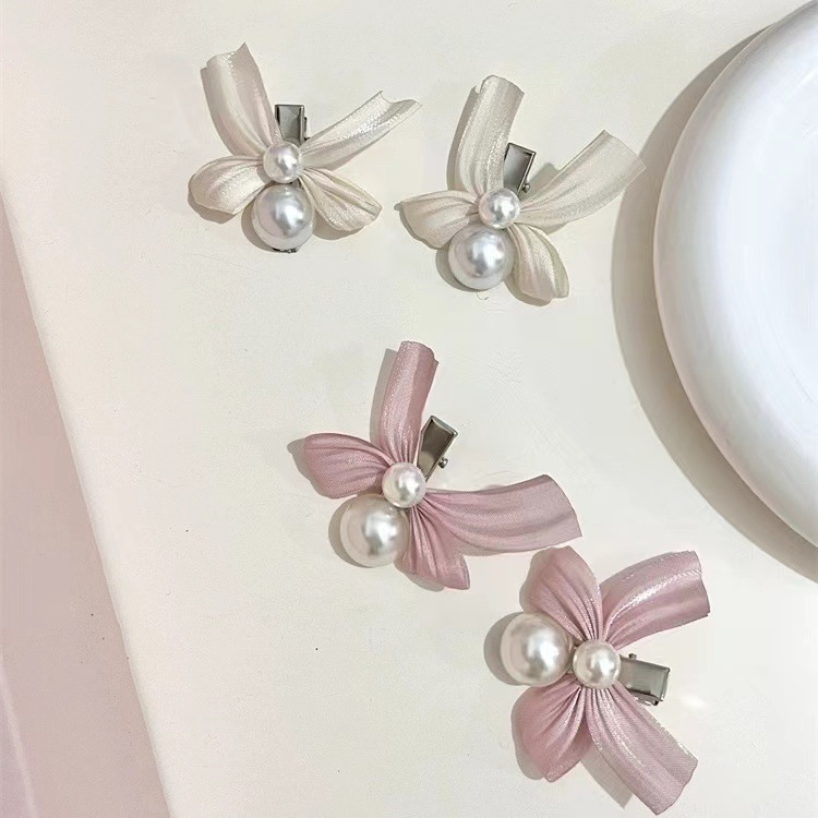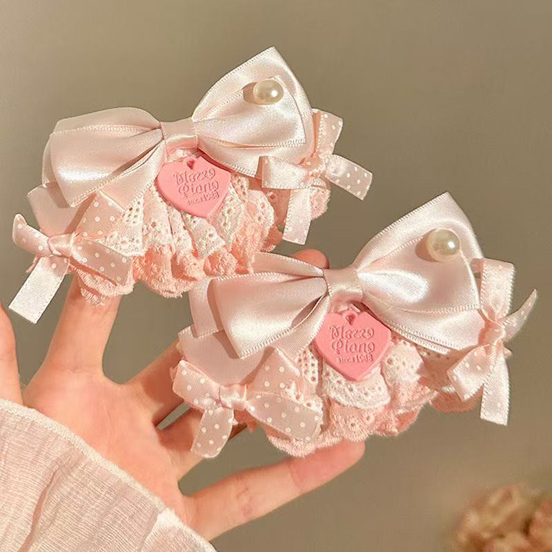 高级感粉色蝴蝶结珍珠蕾丝裙摆发夹甜美边夹侧边刘海夹洛丽塔头饰