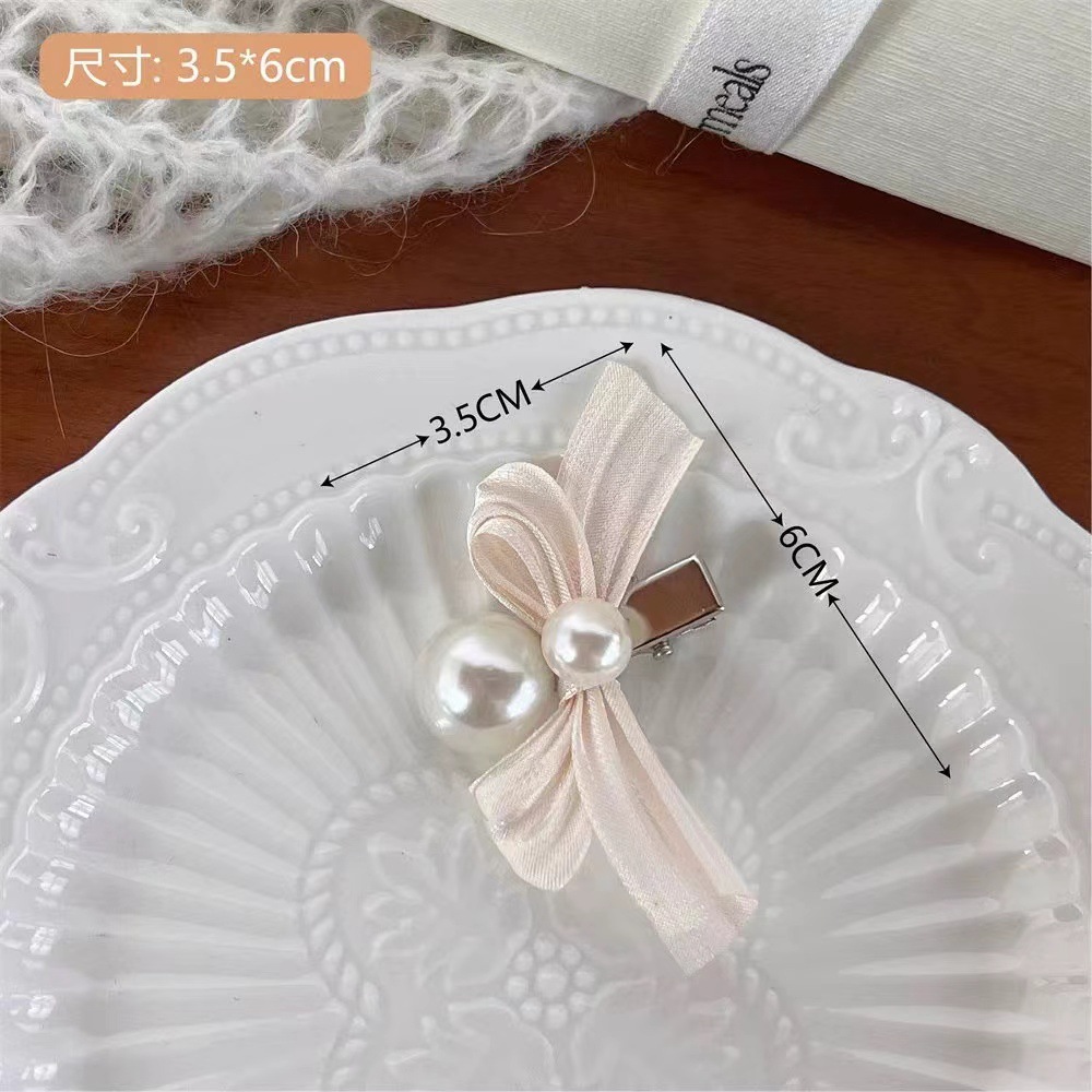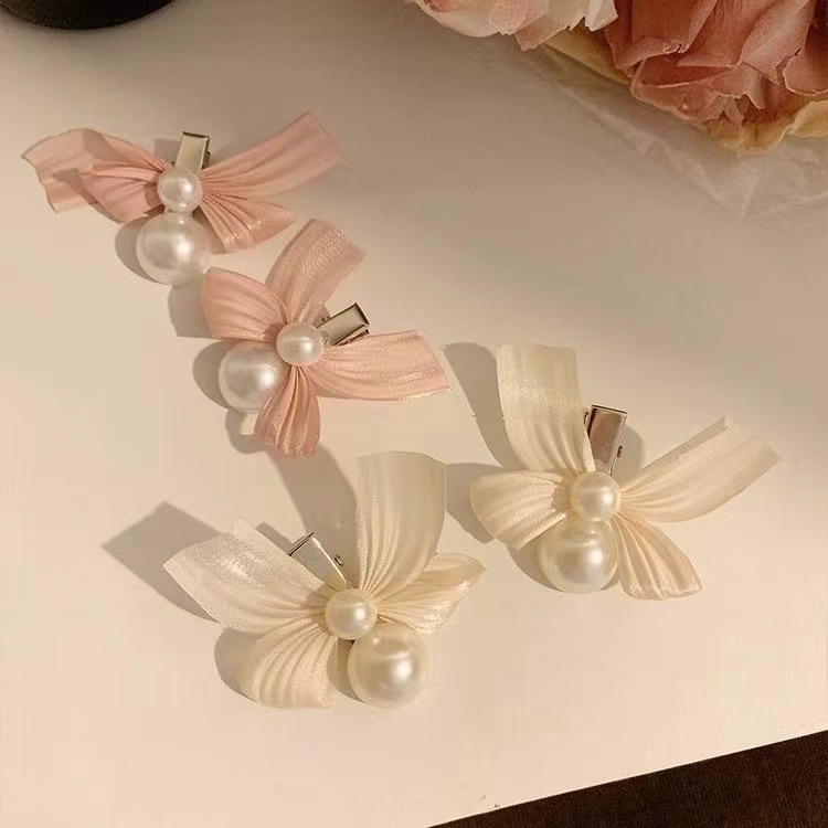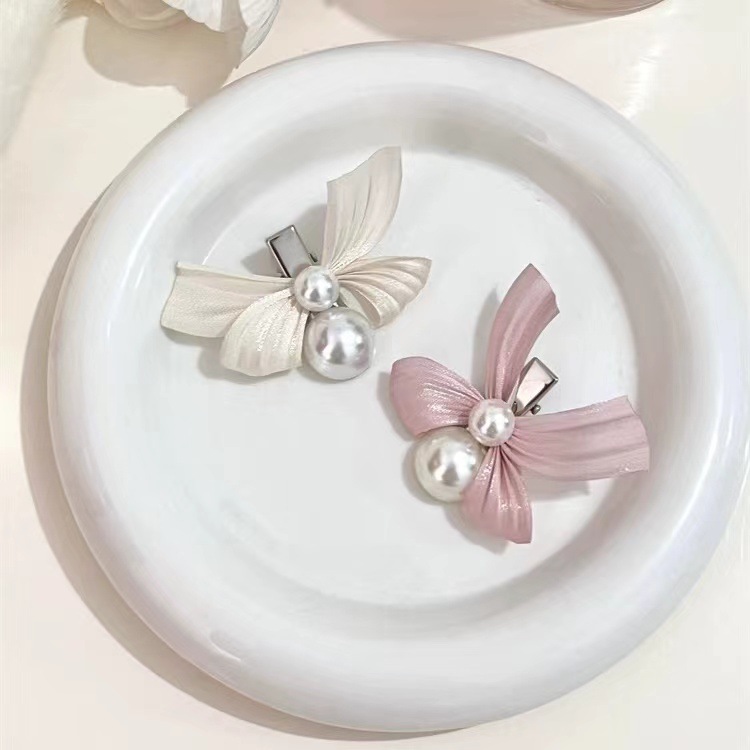 フランス式の甘い心の真珠の蝶結びの髪は前髪を挟みます。