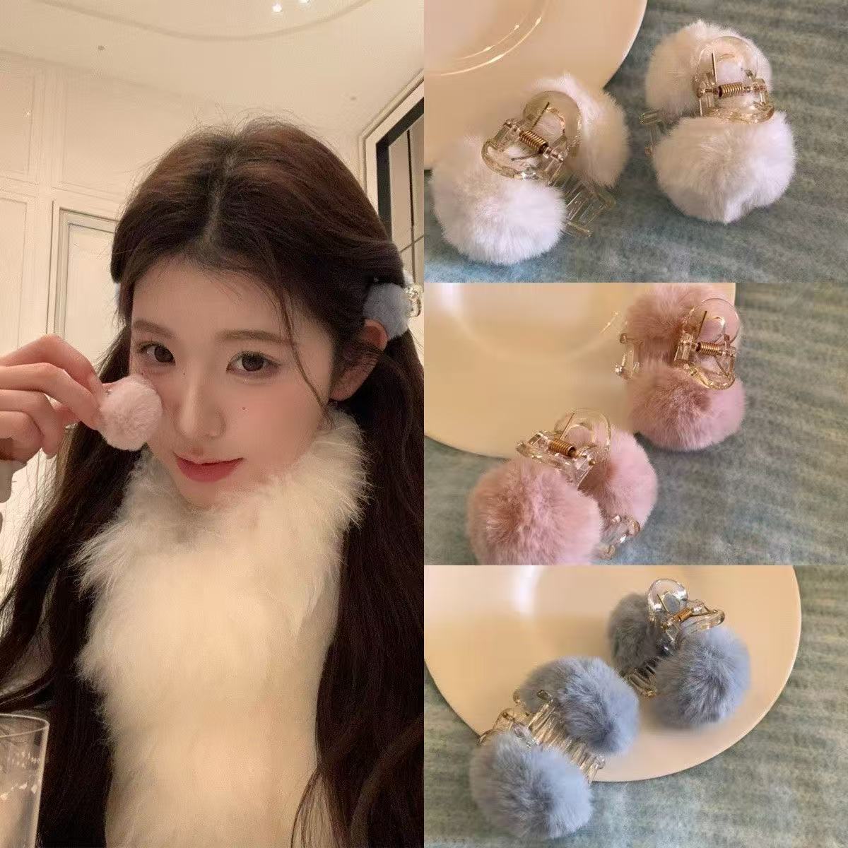 秋冬毛绒毛球发夹侧边刘海夹仿兔毛毛小抓夹创意小众发卡新款发饰
