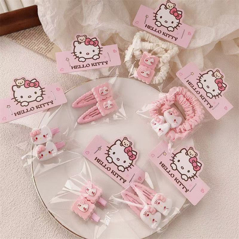甘い粉のビスケットKTケイティの猫のヘアピンの髪のひもの砕いた髪の前髪は皮の筋のひもの髪の飾りを挟んで1元のバッチを並べます。