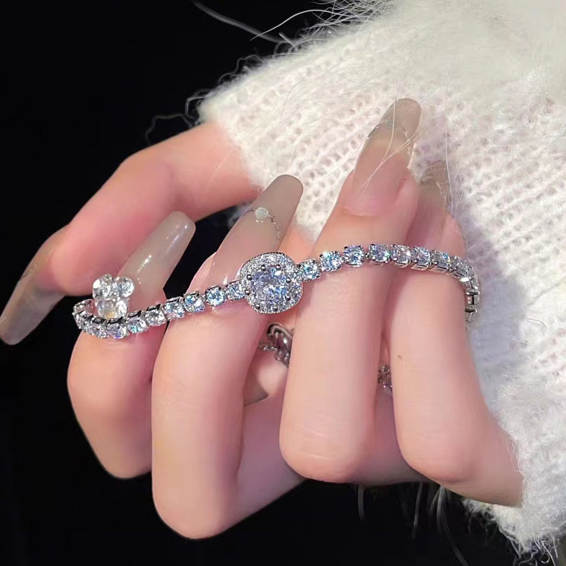 新款高级感轻奢方形锆石手链 时尚简约显气质个性满钻手环批发
