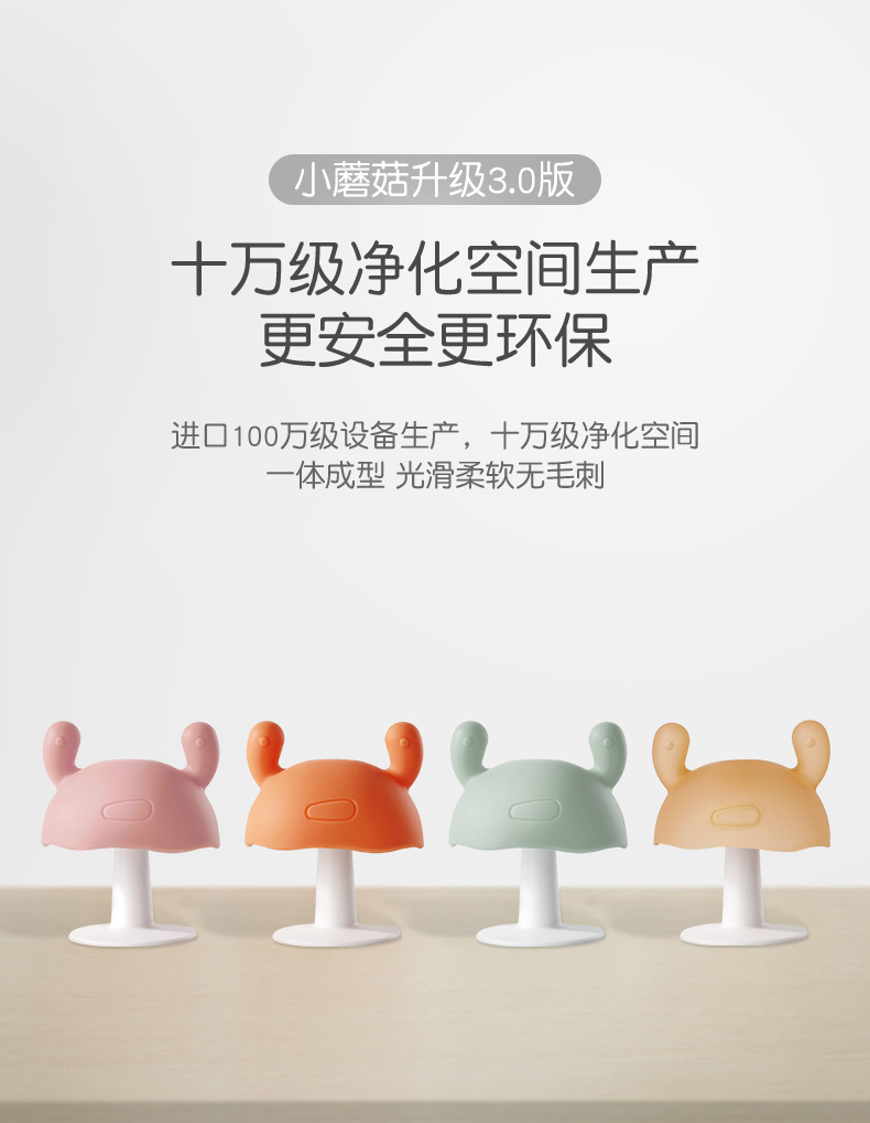 歯磨き棒の乳幼児の歯のゴムのシリカゲルのおもちゃの赤ちゃんの歯はゴムを噛んで手の神器の小さいキノコを食べて口をなだめたいです。