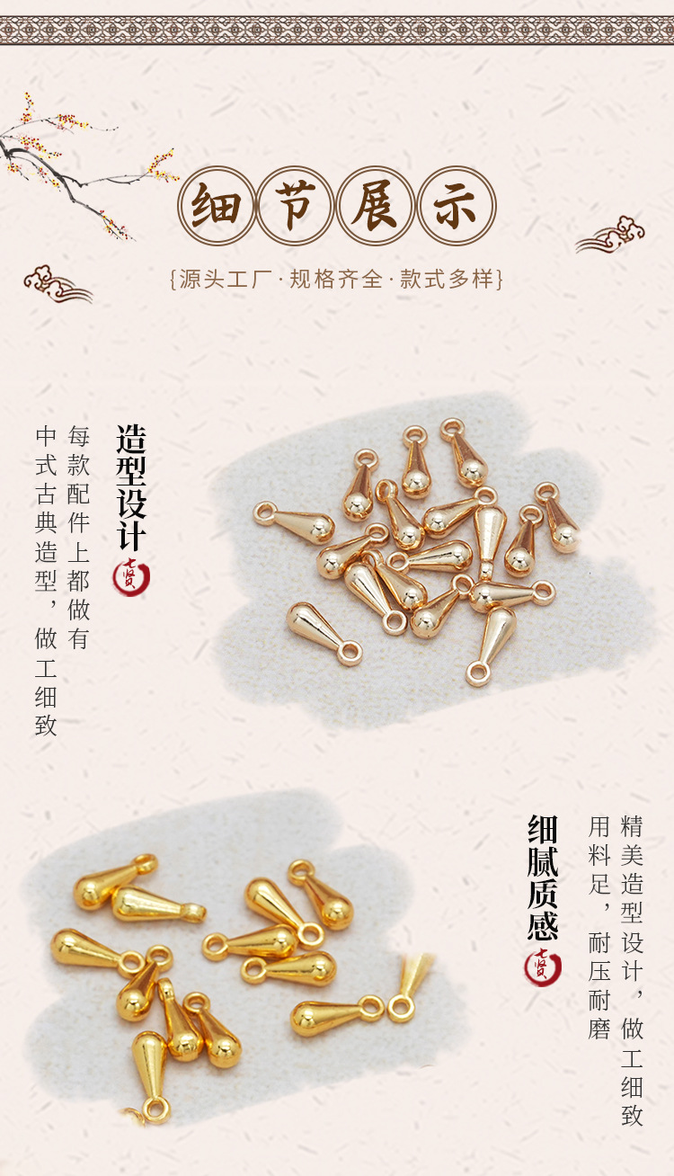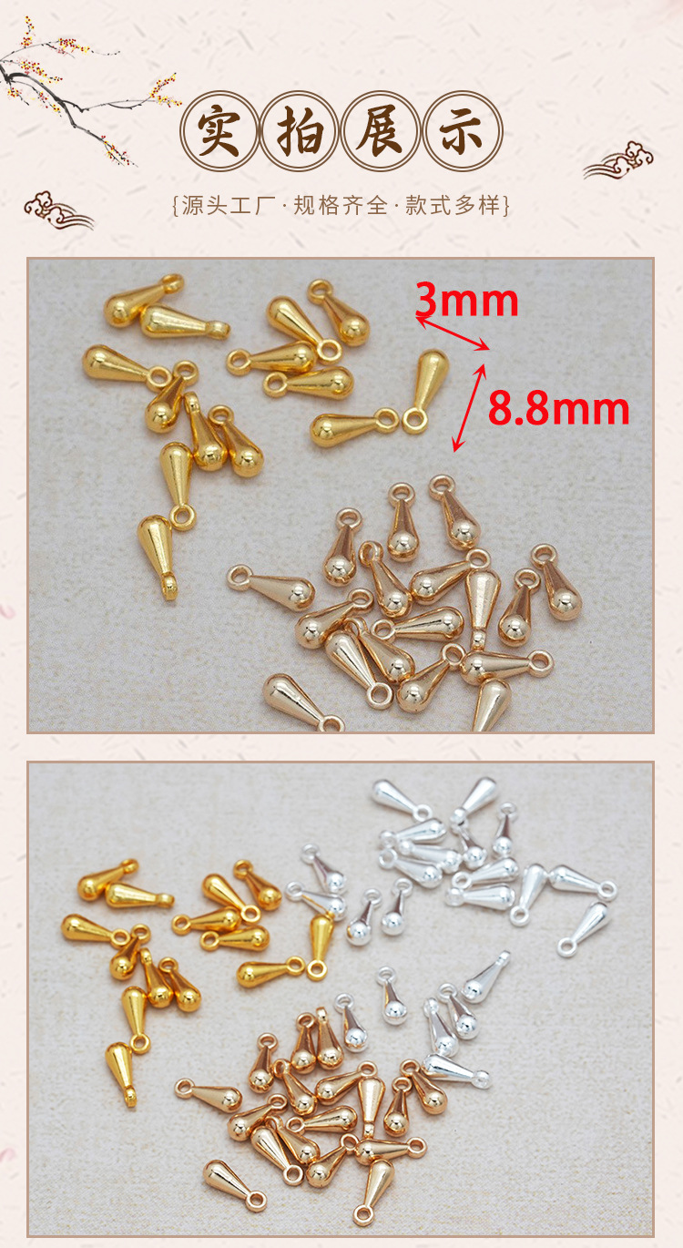 14k包金保色水滴形吊坠 diy饰品配件 手链水滴尾链挂件吊坠